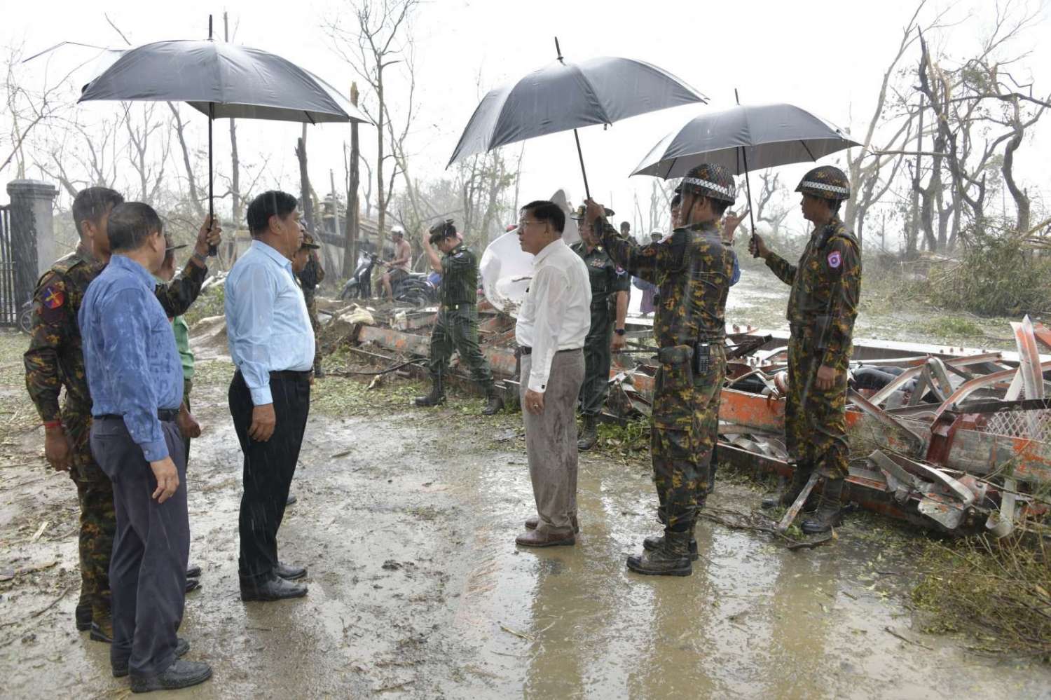 မုန်တိုင်းဒဏ်ကျရောက်ခဲ့သည့် ရခိုင်ပြည်နယ်အတွင်း ပြန်လည်ထူထောင်ရေးလုပ်ငန်းများ ဆောင်ရွက်ရန်အတွက် ပြည်နယ်သဘာဝဘေးအန္တရာယ်ဆိုင်ရာ စီမံခန့်ခွဲမှုအဖွဲ့အစည်းများ ဖွဲ့စည်းဆောင်ရွက်လျက်ရှိကြောင်း၊ မုန်တိုင်းမကျ ရောက်မီကာလအတွင်း စစ်တွေ၊ မြောက်ဦး၊ မောင်တော၊ ကျောက်ဖြူ၊ သံတွဲ၊ တောင်ကုတ်နှင့် အမ်းမြို့များရှိ သဘာဝဘေးဒဏ်ခိုလုံရာ Shelter များသို့ ဒေသခံပြည်သူ ၂၃၇၀၀ ဦးကို ပြောင်းရွှေ့ပေးနိုင်ခဲ့ကြောင်း၊ အခြားဘေးလွတ်ရာနေရာများသို့ ရွှေ့ပြောင်းပေးမှုအနေဖြင့် ၆၂၆၈၄၉ ဦးကို ပြောင်းရွှေ့ပေးနိုင်ခဲ့ကြောင်း၊ အလားတူ IDP စခန်းများတွင်ရောက်ရှိ နေသူများအနက်မှ ၆၂၃၁၉ ဦးအား ဘေးလွတ်ရာသို့ရွှေ့ပြောင်းပေးနိုင်ခဲ့ကြောင်း၊ မုန်တိုင်းစတင်ဝင်ရောက်သည့် ၁၄ ရက်နေ့ နံနက် ၁၀ နာရီ ၃၀ အချိန်တွင် တစ်နာရီလေတိုက်နှုန်းမှာ ၆၀ မိုင်ရှိခဲ့ပြီး မွန်းလွဲ ၁ နာရီ ၃၀ မိနစ်မှ ၃ နာရီခွဲအချိန်အထိ တစ်နာရီလေတိုက်နှုန်းမှာ ၁၂၀ မိုင်အထိရှိခဲ့ကာ အပြင်းဆုံး လေတိုက်ခတ်နှုန်းအထိ ရောက်ရှိခဲ့ကြောင်း၊ မုန်တိုင်းတိုက်ခတ်မှုကြောင့် ရခိုင်ပြည်နယ်အတွင်း လူနေအိမ်များ၊ ရုံးအဆောက်အဦများ၊ သာသနိကအဆောက်အဦများ အမိုးလန်ပျက်စီးခြင်းနှင့် ပြိုကျပျက်စီးခြင်း၊ ရုပ်သံထပ်ဆင့်လွှင့် တာဝါတိုင်နှင့် ဆက်သွယ်ရေးတာဝါတိုင်အချို့ ပြိုကျပျက်စီးခဲ့ပြီး ၁၄ ရက်နေ့အထိ သေဆုံးသူ ၂ ဦး၊ ထိခိုက်ဒဏ်ရာရ ၂၈ ဦးရှိကြောင်း ကနဦးသတင်းများအရသိရှိရကြောင်းနှင့် နိုင်ငံတော်စီမံအုပ်ချုပ်ရေးကောင်စီဥက္ကဋ္ဌ နိုင်ငံတော်ဝန်ကြီးချုပ်အနေဖြင့် ရခိုင်ပြည်နယ်အတွင်း လိုအပ်သည့်ကူညီကယ်ဆယ်ရေးနှင့် ပြန်လည်ထူထောင်ရေးလုပ်ငန်းများကို ဆောင်ရွက်နိုင်ရေးအတွက် ကိုယ်တိုင်ကိုယ်ကျ လာရောက်ကြည့်ရှုခဲ့ခြင်းဖြစ်ပြီး တာဝန်ရှိသူများကို လိုအပ်သည်များလမ်းညွှန်မှာကြားခဲ့ခြင်းဖြစ်ကြောင်း သတင်းရရှိသည်။