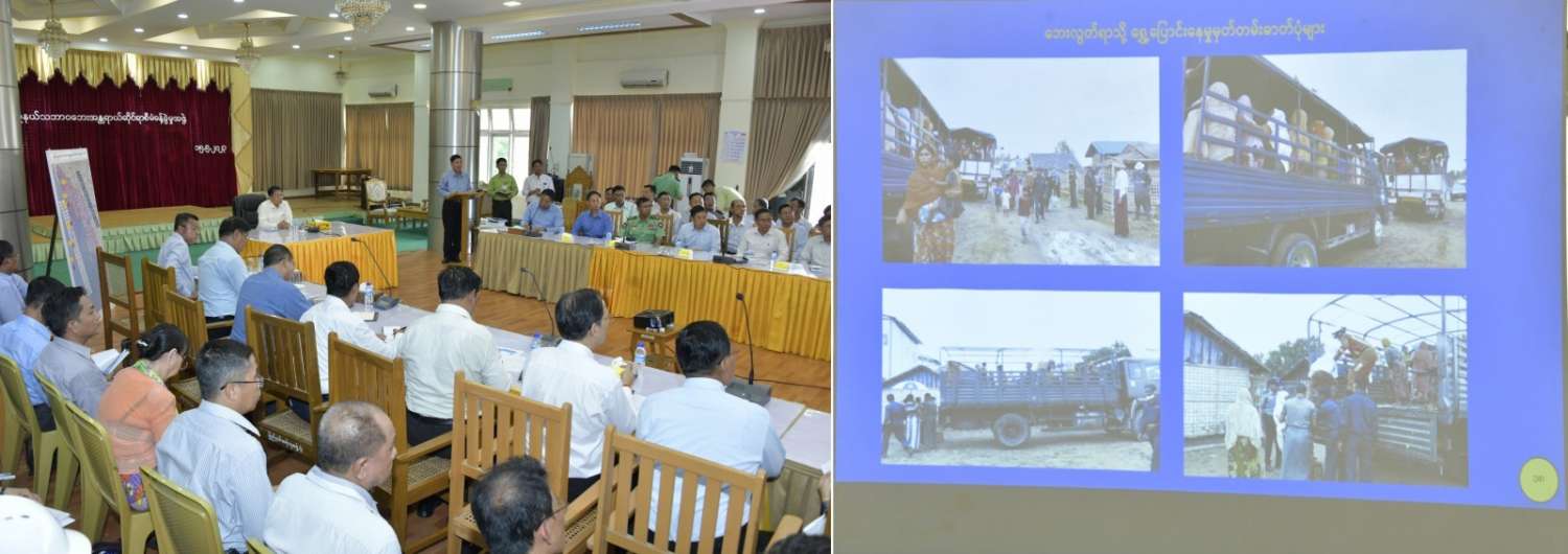 ယင်းနောက် ပြည်နယ်အစိုးရအဖွဲ့ရုံး၌ ရခိုင်ပြည်နယ်ဝန်ကြီးချုပ် ဦးထိန်လင်းက ပြည်နယ်သဘာဝဘေးအန္တရာယ်ဆိုင်ရာ စီမံခန့်ခွဲမှုအဖွဲ့ ဖွဲ့စည်းထားရှိမှုနှင့် လုပ်ငန်းညှိနှိုင်း အစည်းအဝေးများကျင်းပကာ သဘာဝဘေးအန္တရာယ်မကျရောက်မီကတည်းက ကြိုတင်ပြင်ဆင်ခြင်းများ ဆောင်ရွက်ခဲ့မှု၊ ပြည်နယ်သဘာဝဘေးအန္တရာယ်ဆိုင်ရာ အရေးပေါ်အခြေအနေ စီမံခန့်ခွဲမှုရုံး Command Post အား မေ ၇ ရက်တွင် ရခိုင်ပြည်နယ် အစိုးရအဖွဲ့ရုံး၌ဖွင့်လှစ်ထားရှိပြီး ခရိုင် ၇ ခရိုင်၊ မြို့နယ် ၁၇ မြို့နယ်တို့တွင်လည်း ဖွင့်လှစ်ထားရှိမှု၊ သဘာဝဘေးအန္တရာယ်ခိုလှုံရာ Shelter များကို ဆောင်ရွက်ထားရှိမှု၊ သဘာဝဘေးအန္တရာယ် မကျရောက်မီ နိုင်ငံတော်အကြီးအကဲ၏ လမ်းညွှန်မှာကြားချက်အရ မြို့နယ်အလိုက် ဘေးလွတ်ရာသို့ ရွှေ့ပြောင်းထားရှိမှု၊ သဘာဝဘေးအန္တရာယ်သင့်ခဲ့ရသည့် ပြည်သူများအတွက် လတ်တလော အုပ်ချုပ်ထောက်ပံ့မှုများ ဆောင်ရွက်နိုင်ရန် ထောက်ပံ့ရေးပစ္စည်းများ ထောက်ပံ့ပေးထားမှု၊ ပြည်နယ်အစိုးရအဖွဲ့ အရေးပေါ်ရန်ပုံငွေဖြင့် ဆန်၊ ဆီ၊ ဆား၊ ငပိနှင့် စက်သုံးဆီ အရန်ဝယ်ယူထားရှိမှု၊ ပြည်နယ်အစိုးရ၏ အစီအစဉ်ဖြင့် ကယ်ဆယ်ထောက်ပံ့ရေးပစ္စည်းများ စုဆောင်းထားရှိမှု၊ ဘေးအန္တရာယ်ဆိုင်ရာ စီမံခန့်ခွဲမှုဦးစီးဌာနမှ ကယ်ဆယ်ရေးပစ္စည်း ၁၇ မျိုး သိုလှောင်ထားရှိမှု၊ သောက်သုံးရေ ပြတ်လပ်မှုမရှိစေရေးနှင့် ဆက်သွယ်မှုမပြတ်တောက်ရေး ဆောင်ရွက်ထားရှိမှု၊ မေ ၁၄ ရက်တွင် ဆိုင်ကလုန်းမုန်တိုင်း (Severe Cyclonic Storm) "မိုခါ" (MOCHA) စစ်တွေမြို့သို့ ဝင်ရောက်ခဲ့မှုနှင့် ပျက်စီးဆုံးရှုံးမှုများ ဖြစ်ပေါ်ခဲ့မှု၊ သဘာဝဘေးသင့်ခဲ့ရသည့် နေအိမ်များ ပြန်လည်ပြုပြင်နိုင်ရေးလိုအပ်မှု၊ ထောက်ပံ့ရေးပစ္စည်းများ လိုအပ်မှုနှင့် လတ်တလောပျက်စီးဆုံးရှုံးမှု အခြေအနေများကို ရှင်းလင်းတင်ပြသည်။