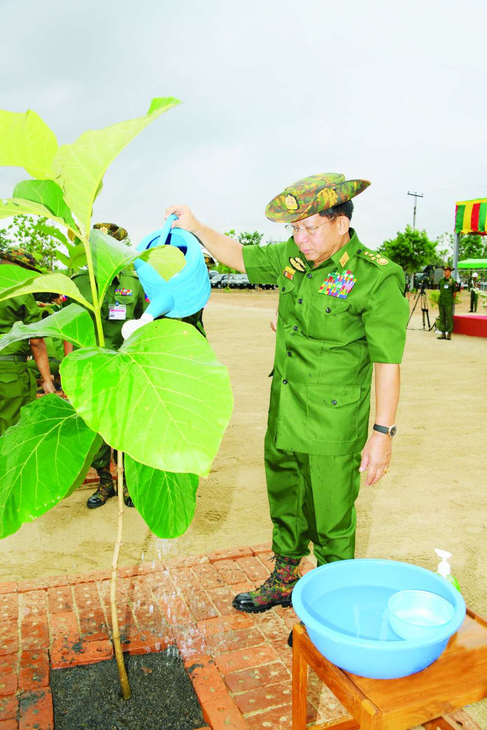 ယနေ့တွင် ၂၀၂၃ ခုနှစ်၊ ကာကွယ်ရေးဦးစီးချုပ်ရုံး (ကြည်း၊ ရေ၊ လေ) မိသားစုများ၏ ပထမအကြိမ်မိုးရာသီသစ်ပင်စိုက်ပျိုးပွဲ အခမ်းအနားကို နေပြည်တော်၊ ဇေယျာသီရိမြို့နယ်၊ ရေဆင်းဆည်အနီး၌ ကျင်းပပြုလုပ်ရာ နိုင်ငံတော်စီမံအုပ်ချုပ်ရေးကောင်စီဥက္ကဋ္ဌ တပ်မတော်ကာကွယ်ရေးဦးစီးချုပ် ဗိုလ်ချုပ်မှူးကြီး မင်းအောင်လှိုင်တက်ရောက်၍ ရတနာတန်းဝင်ကျွန်းပင်ကို ဦးဆောင်စိုက်ပျိုးပေးသည်။
