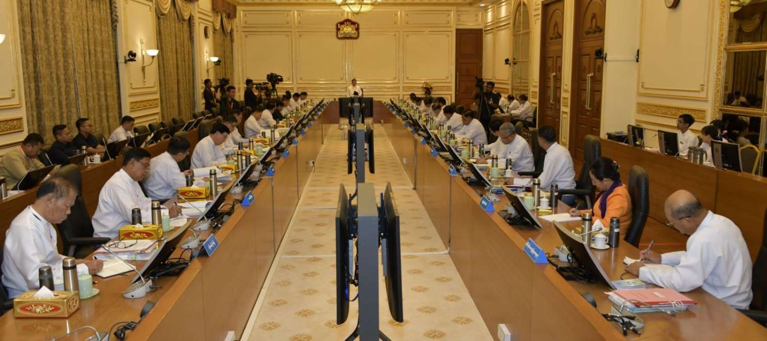 ယင်းနောက် အစည်းအဝေးသို့ တက်ရောက်လာကြသည့် ပြည်ထောင်စုဝန်ကြီးများက သက်ဆိုင်ရာကဏ္ဍအလိုက် ရှင်းလင်းတင်ပြကြသည်။
