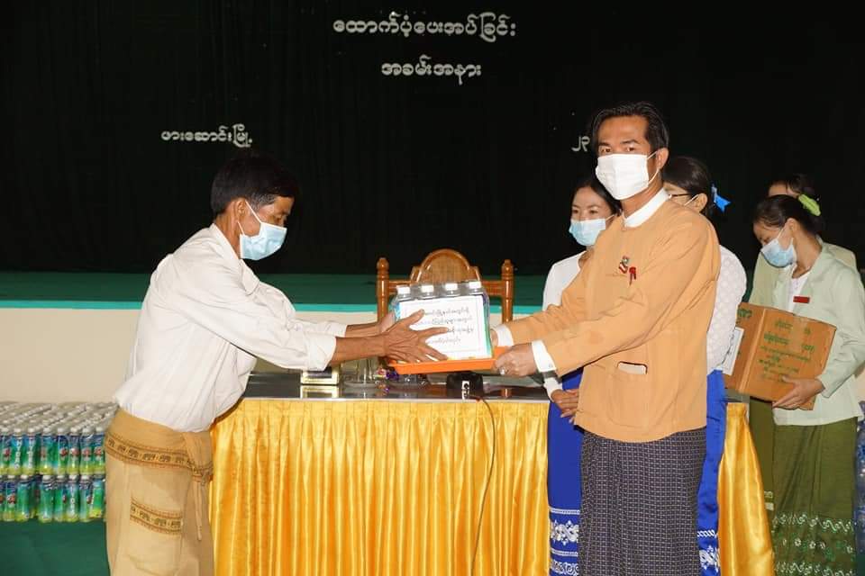 လူမှုဝန်ထမ်း၊ ကယ်ဆယ်ရေးနှင့် ပြန်လည်နေရာချထားရေးဝန်ကြီးဌာန၊ ဘေးအန္တရာယ်ဆိုင်ရာ စီမံခန့်ခွဲမှု ဦးစီးဌာန၊ ကယားပြည်နယ် ဦးစီးမှူးရုံး၊ ယင်းမာပင်ခရိုင် ဦးစီးမှူးရုံးနှင့် ကနီမြို့နယ် ဦးစီးမှူးရုံးတို့မှ တာဝန်ရှိသူများသည် ဘေးသင့်နေရာများသို့ သွားရောက်၍ ဆန်ရိက္ခာ ဖိုးစုစုပေါင်း ငွေကျပ်(၁,၈၁၆,၅၀ဝိ/-)နှင့် Mask ၊ ဆပ်ပြာများအား ယနေ့တွင်ထောက်ပံ့ပေးခဲ့ပြီး ထောက်ပံ့မှုများ ဆက်လက်ဆောင်ရွက် လျက်ရှိကြောင်း သိရသည်။