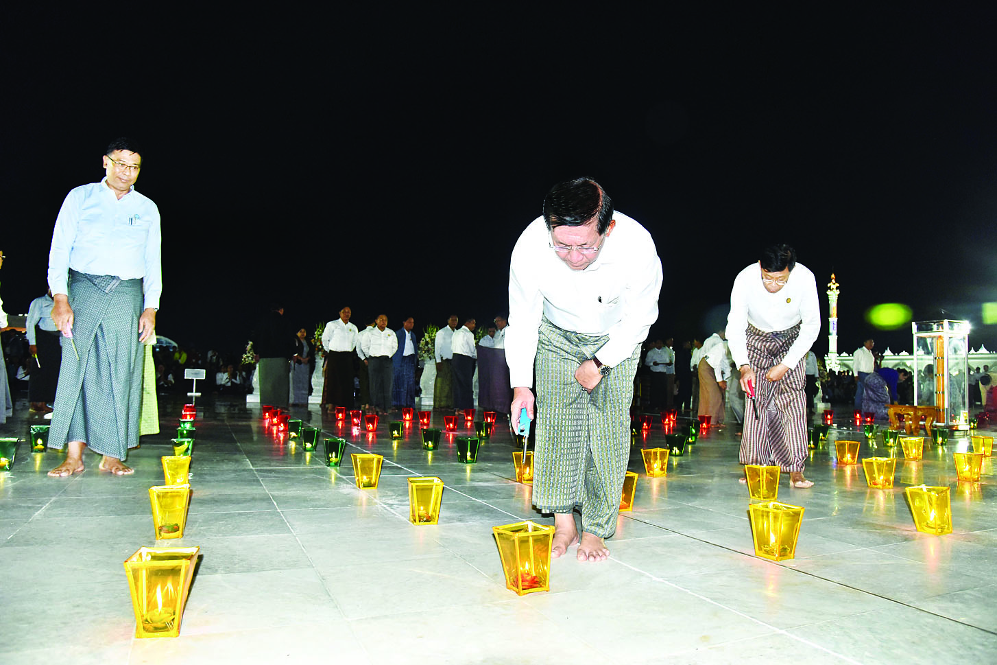 ပြည်ထောင်စုနယ်မြေ နေပြည်တော် ဒက္ခိဏသီရိမြို့နယ်ရှိ မာရဝိဇယဗုဒ္ဓရုပ်ပွားတော်မြတ်ကြီး တန်ဆောင်တိုင်မီးထွန်းပွဲတော် မီးပုံးပျံလွှတ်တင်ပူဇော်ခြင်းအခမ်းအနားကို နိုဝင်ဘာ ၂၅ ရက်မှစတင်၍ ကျင်းပပြုလုပ်လျက်ရှိပြီး ယနေ့တန်ဆောင်မုန်းလပြည့်နေ့ ညနေပိုင်းတွင် မာရဝိဇယဗုဒ္ဓဥယျာဉ်တော်အတွင်း၌ ဆက်လက်ကျင်းပပြုလုပ်ရာ နိုင်ငံတော်စီမံအုပ်ချုပ်ရေးကောင်စီဥက္ကဋ္ဌ နိုင်ငံတော်ဝန်ကြီးချုပ် ဗိုလ်ချုပ်မှူးကြီး မင်းအောင်လှိုင်နှင့် ဇနီး ဒေါ်ကြူကြူလှတို့ တက်ရောက်ကြည့်ရှုအားပေးကြသည်။