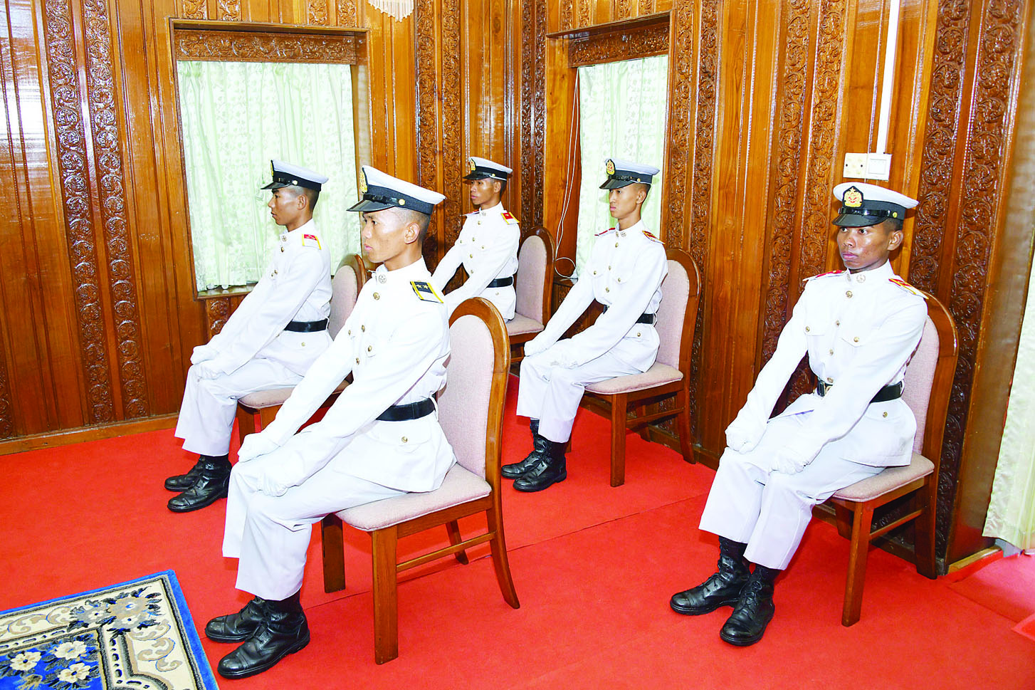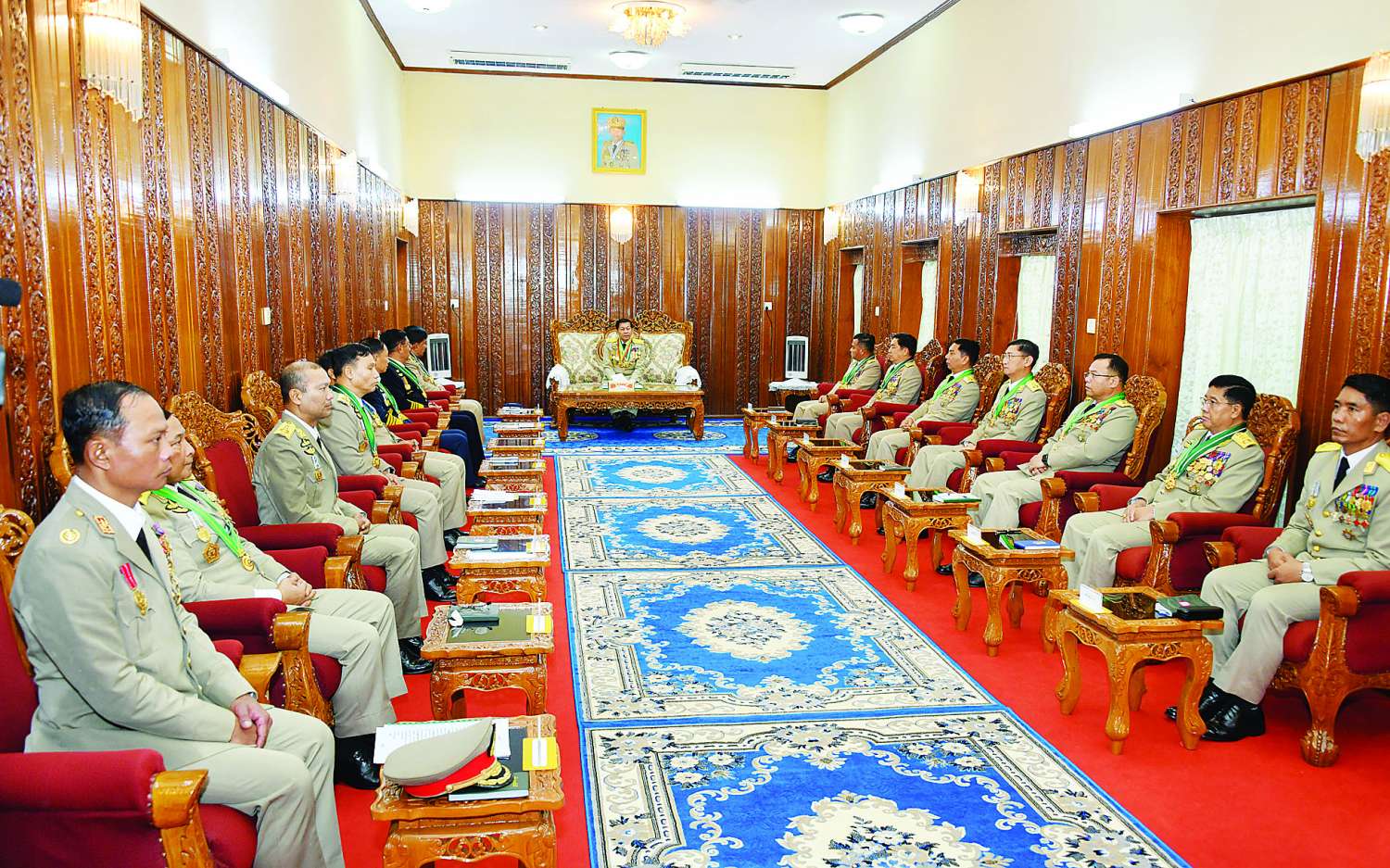 စစ်ရေးပြအခမ်းအနားအပြီးတွင် နိုင်ငံတော်စီမံအုပ်ချုပ်ရေးကောင်စီဥက္ကဋ္ဌ တပ်မတော်ကာကွယ်ရေးဦးစီးချုပ် ဗိုလ်ချုပ်မှူးကြီး သတိုးမဟာသရေစည်သူ သတိုးသီရိသုဓမ္မ မင်းအောင်လှိုင်သည် စစ်တက္ကသိုလ်ကျောင်းဌာနချုပ်ဧည့်ခန်းမ၌ ထူးချွန်ဆုရရှိကြသည့် ဗိုလ်လောင်း ငါးဦးကိုတွေ့ဆုံ၍ ဂုဏ်ပြုအမှာစကား ပြောကြားသည်။