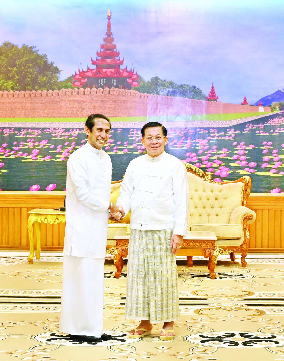 နိုင်ငံတော်စီမံအုပ်ချုပ်ရေးကောင်စီဥက္ကဋ္ဌ နိုင်ငံတော်ဝန်ကြီးချုပ် ဗိုလ်ချုပ်မှူးကြီး မင်းအောင်လှိုင် မြန်မာနိုင်ငံဆိုင်ရာ သီရိလင်္ကာနိုင်ငံ သံအမတ်ကြီးအား လက်ခံတွေ့ဆုံ