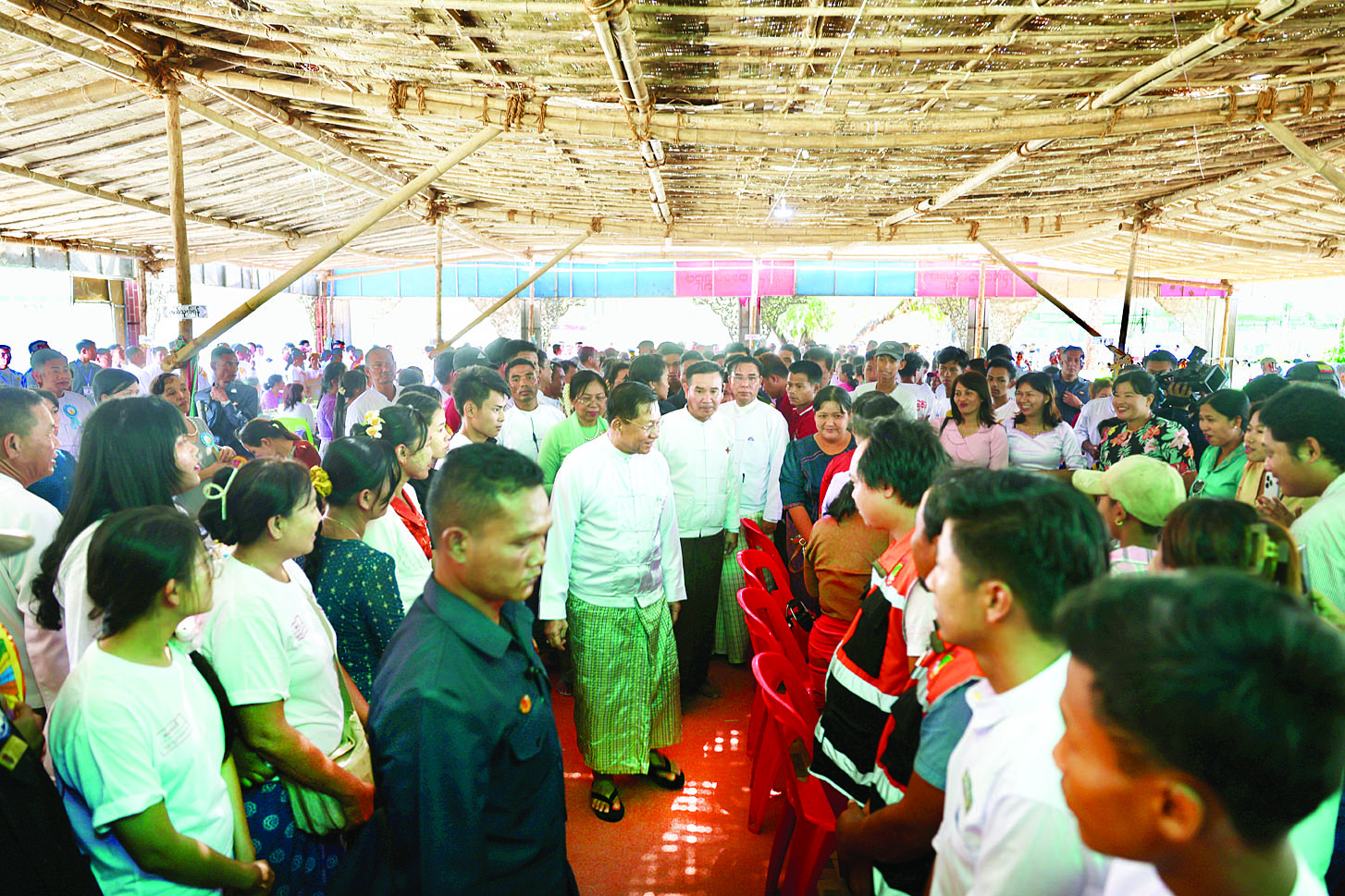 ထို့နောက် နိုင်ငံတော်စီမံအုပ်ချုပ်ရေးကောင်စီဥက္ကဋ္ဌ နိုင်ငံတော်ဝန်ကြီးချုပ်နှင့် ဇနီးတို့သည် ရှေးဟောင်းသမိုင်းဝင် ကျိုက်ပညာယျစေတီတော်မြတ်ကြီး ရတနာစိန်ဖူးတော်၊ ငှက်မြတ်နားတော်တင်လှူပူဇော်ပွဲနှင့် ဗုဒ္ဓါဘိသေကအနေကဇာတင် မဟာမင်္ဂလာအခမ်းအနားများ အောင်မြင်စွာကျင်းပနိုင်ရေးအတွက် ဆောင်ရွက်ခဲ့ကြသည့် အထောက်အကူပြုအဖွဲ့များနှင့် ပရဟိတအသင်းအဖွဲ့များအား ချီးမြှင့်ငွေများ ပေးအပ်ချီးမြှင့်သည်။