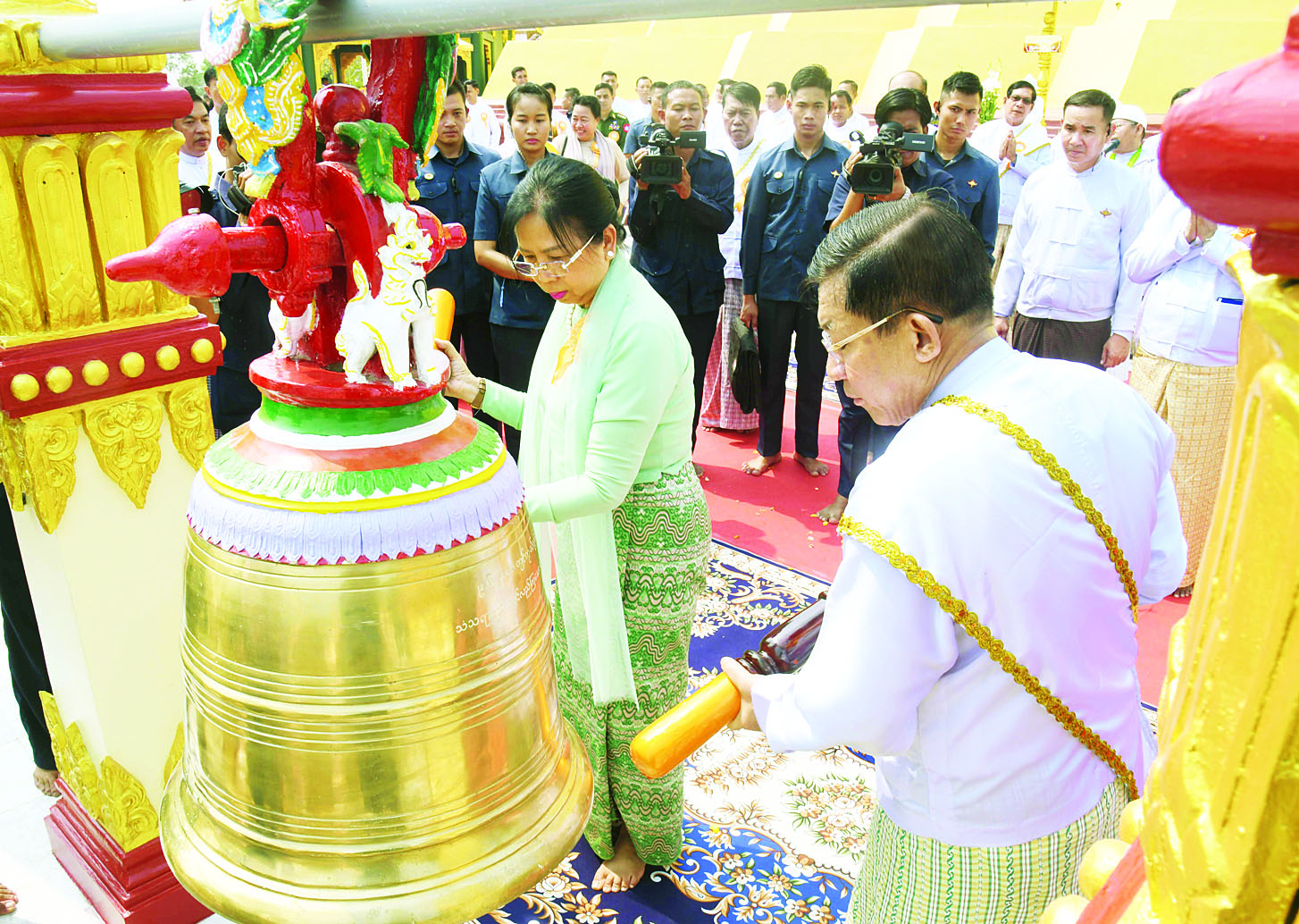 ဆက်လက်၍ နိုင်ငံတော်စီမံအုပ်ချုပ်ရေးကောင်စီဥက္ကဋ္ဌ နိုင်ငံတော်ဝန်ကြီးချုပ်က စေတီတော်မြတ်ကြီးအား ရွှေကြာသင်္ကန်းကပ်လှူပူဇော်ပြီး နိုင်ငံတော်စီမံအုပ်ချုပ်ရေးကောင်စီဥက္ကဋ္ဌ နိုင်ငံတော်ဝန်ကြီးချုပ်နှင့် ဇနီးတို့သည် ရတနာစိန်ဖူးတော်၊ ငှက်မြတ်နားတော် တင်လှူပူဇော်အောင်မြင်ခြင်း အထိမ်းအမှတ်အဖြစ် ရတနာ ရွှေမိုး၊ ငွေမိုးများ ရွာသွန်းဖြိုးကြသည်။