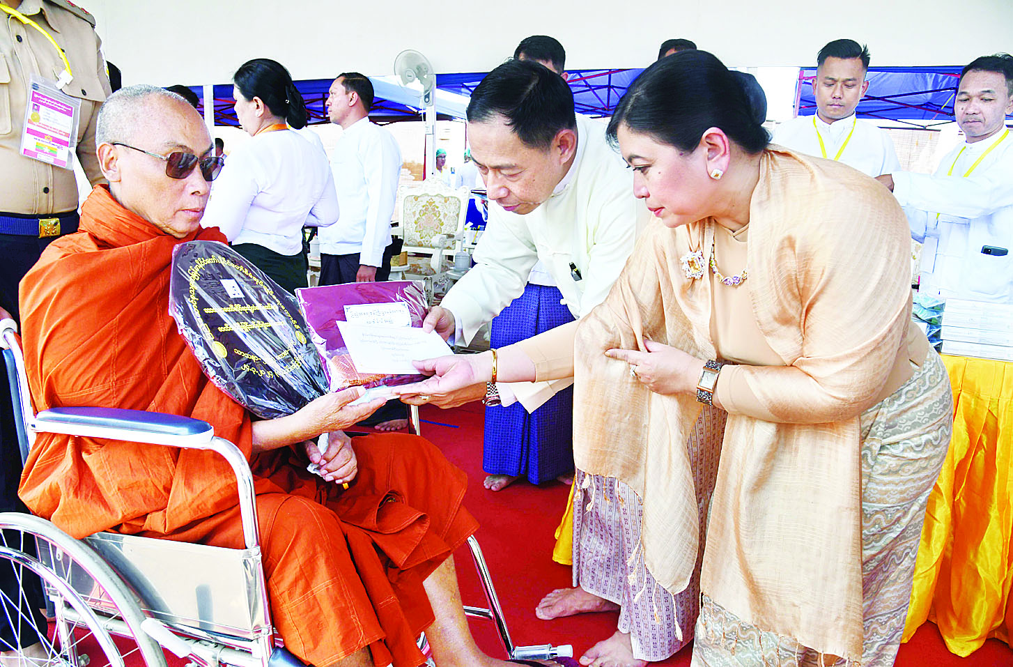 ယင်းနောက် နိုင်ငံတော်စီမံအုပ်ချုပ်ရေးကောင်စီဥက္ကဋ္ဌ နိုင်ငံတော်ဝန်ကြီးချုပ်၏ဇနီးက အဂ္ဂမဟာ ဂန္ထဝါစကပဏ္ဍိတ ဘွဲ့တံဆိပ်တော်ရ စစ်ကိုင်းမြို့၊ ဇေယျသိင်္ဂီသီလရှင်စာသင်တိုက် သီလရှင်ဆရာကြီး ဒေါ်ဂုဏဝတီနှင့် မုံရွာမြို့၊ ဧသုဝတီသီလရှင်စာသင်တိုက် သီလရှင်ဆရာကြီး ဒေါ်ဓမ္မေသီတို့ထံ ဘွဲ့တံဆိပ်တော်နှင့် အဆောင်အယောင်များ ဆက်ကပ်ပူဇော်ကြသည်။