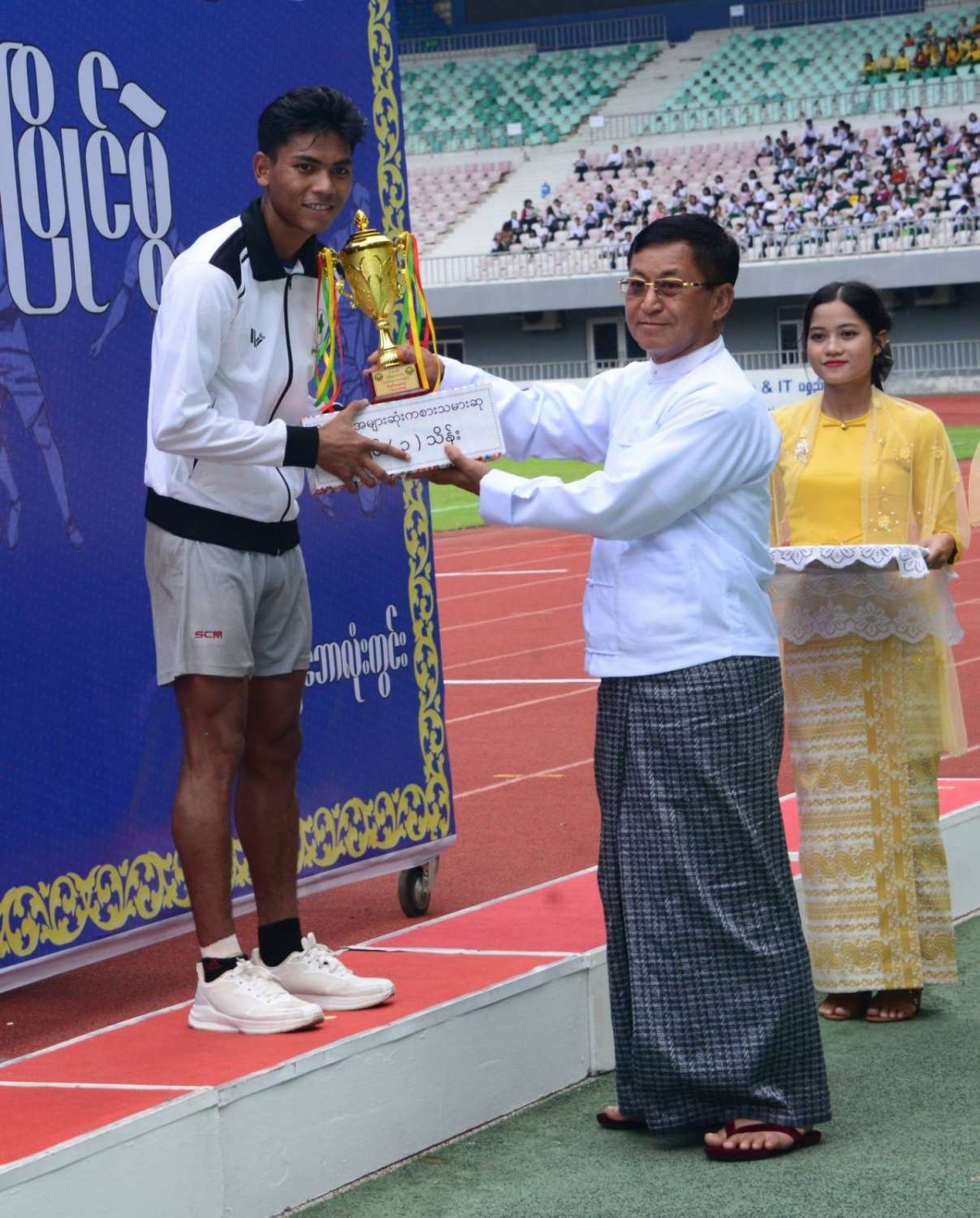 ယင်းနောက် နိုင်ငံတော်စီမံအုပ်ချုပ်ရေးကောင်စီဥက္ကဋ္ဌ နိုင်ငံတော်ဝန်ကြီးချုပ် ဗိုလ်ချုပ်မှူးကြီး မင်းအောင်လှိုင်က ပထမဆုရရှိသည့် နယ်စပ်ရေးရာဝန်ကြီးဌာန ကိုယ်စားပြုအသင်းအား ဂုဏ်ပြုဆုငွေများနှင့် တံခွန်စိုက်ဆုဖလားကို ပေးအပ်ချီးမြှင့်သည်။