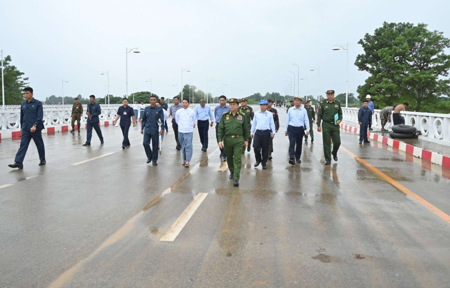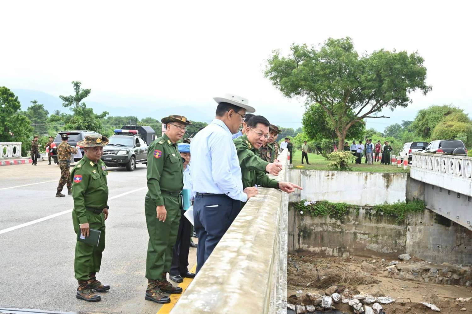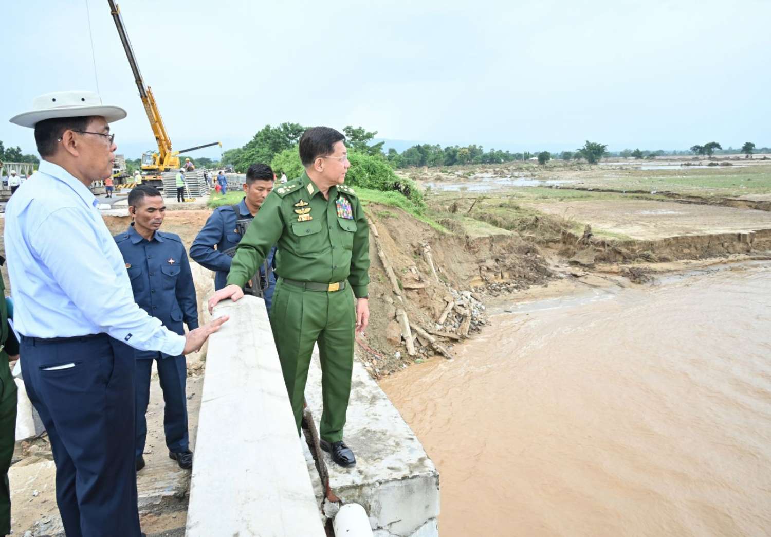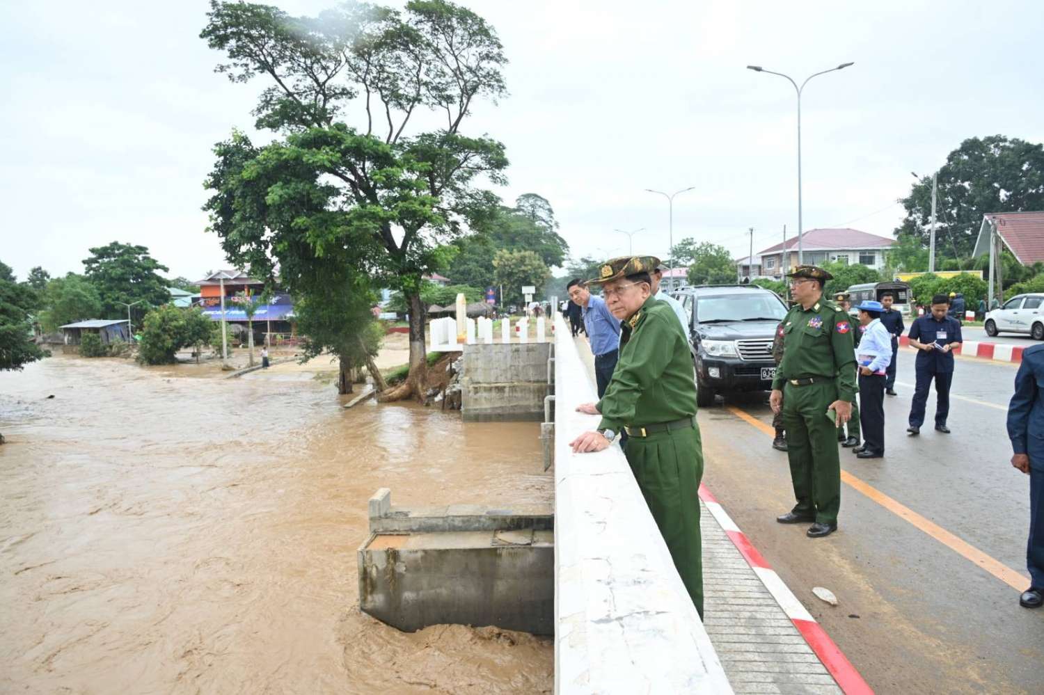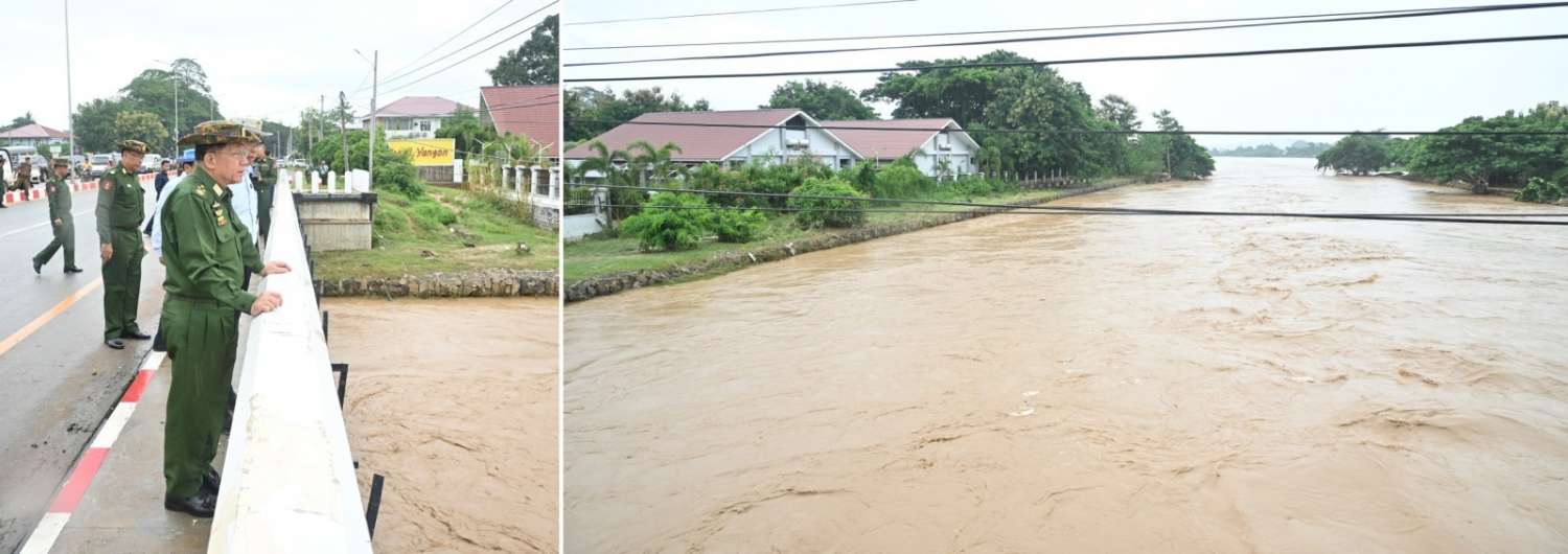 ထို့သို့ ကူညီကယ်ဆယ်ရေးလုပ်ငန်းဆောင်ရွက်နေမှုများ၊ ရေကြီးရေလျှံမှုများကြောင့် ပျက်စီးမှုများဖြစ်ပေါ်ခဲ့သည့် လမ်း၊ တံတားများ လမ်းပန်းဆက်သွယ်မှု မပြတ်တောက်စေရေးအတွက် ယာယီပြင်ဆင်ဆောင်ရွက်နေမှုများနှင့် ရေကြီးရေလျှံမှုအခြေအနေများကို နိုင်ငံတော်စီမံအုပ်ချုပ်ရေးကောင်စီဥက္ကဋ္ဌ တပ်မတော်ကာကွယ်ရေးဦးစီးချုပ် ဗိုလ်ချုပ်မှူးကြီး မင်းအောင်လှိုင်သည် တာဝန်ရှိသူများလိုက်ပါ၍ ယနေ့မွန်းလွဲပိုင်းတွင် လိုက်လံကြည့်ရှုစစ်ဆေးသည်။