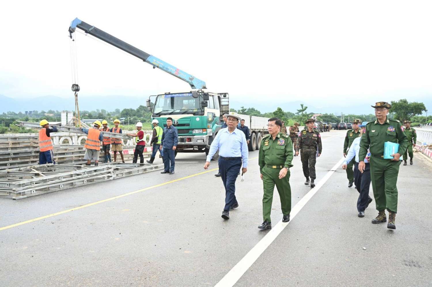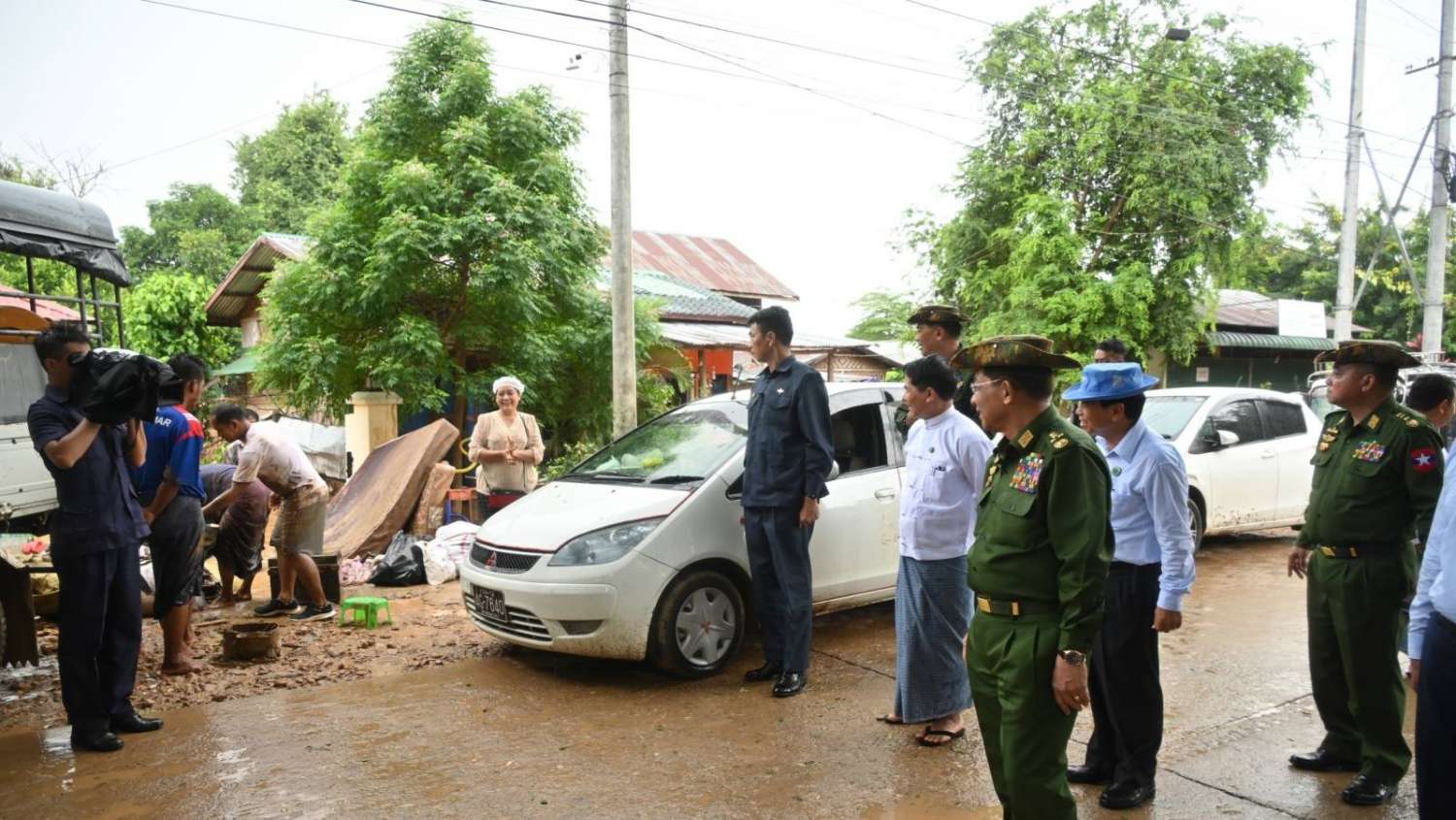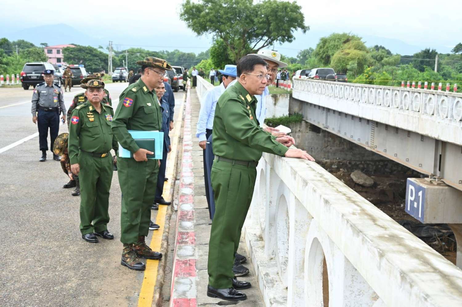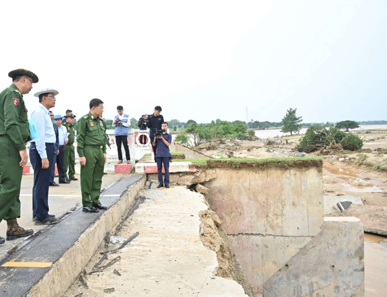 ထို့သို့ ကူညီကယ်ဆယ်ရေးလုပ်ငန်းဆောင်ရွက်နေမှုများ၊ ရေကြီးရေလျှံမှုများကြောင့် ပျက်စီးမှုများဖြစ်ပေါ်ခဲ့သည့် လမ်း၊ တံတားများ လမ်းပန်းဆက်သွယ်မှု မပြတ်တောက်စေရေးအတွက် ယာယီပြင်ဆင်ဆောင်ရွက်နေမှုများနှင့် ရေကြီးရေလျှံမှုအခြေအနေများကို နိုင်ငံတော်စီမံအုပ်ချုပ်ရေးကောင်စီဥက္ကဋ္ဌ တပ်မတော်ကာကွယ်ရေးဦးစီးချုပ် ဗိုလ်ချုပ်မှူးကြီး မင်းအောင်လှိုင်သည် တာဝန်ရှိသူများလိုက်ပါ၍ ယနေ့မွန်းလွဲပိုင်းတွင် လိုက်လံကြည့်ရှုစစ်ဆေးသည်။
