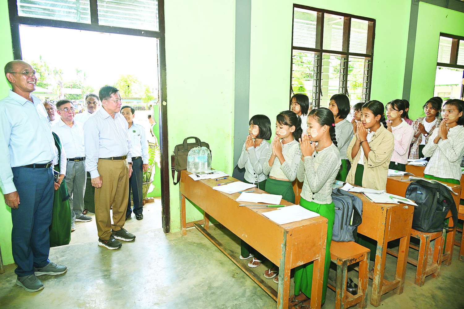 ထို့နောက် နိုင်ငံတော်စီမံအုပ်ချုပ်ရေးကောင်စီဥက္ကဋ္ဌ နိုင်ငံတော်ဝန်ကြီးချုပ်နှင့် အဖွဲ့ဝင်များသည် ဇေယျာသီရိမြို့နယ် ကျောက်ချက်ကျေးရွာ အခြေခံပညာအထက်တန်းကျောင်းသို့ ရောက်ရှိပြီး ရေဝင်ရောက်မှုများအား ပြန်လည်ရှင်းလင်းဆောင်ရွက်ထားရှိမှု၊ ကျောင်းသား ကျောင်းသူများ ပညာသင်ကြားနေမှု၊ ပညာရေးဝန်ကြီးဌာနမှ စာရေးကိရိယာများနှင့် ကျောင်းသုံးစာအုပ်များ ထောက်ပံ့ပေးထားမှုအခြေအနေများကို ကြည့်ရှုစစ်ဆေးပြီး ကျောင်းအုပ်ဆရာမကြီးနှင့် တာဝန်ရှိသူများ၏ တင်ပြချက်များအပေါ် လိုအပ်သည်များ မှာကြားသည်။