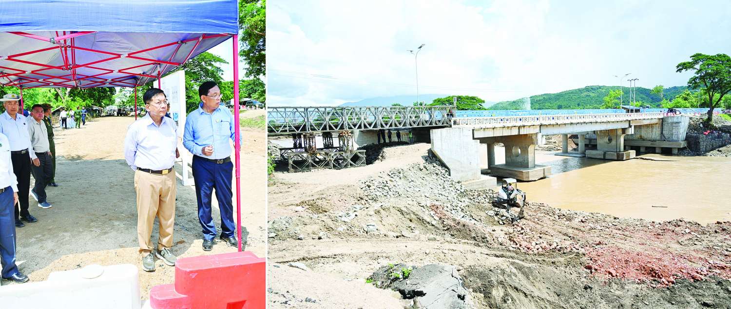 ယင်းနောက် နိုင်ငံတော်စီမံအုပ်ချုပ် ရေးကောင်စီဥက္ကဋ္ဌ နိုင်ငံတော်ဝန်ကြီးချုပ်နှင့် အဖွဲ့ဝင်များသည် ပေါင်းလောင်းမြစ်ကူးတံတား (အဝေရာ) ၏ ပျဉ်းမနားဘက်ခြမ်းရှိ တံတားချဉ်းကပ်လမ်း ရေတိုက်စားခဲ့မှုကြောင့် ပျက်စီးမှုအား နှစ်လွှာတစ်ထပ် ယာယီဘေလီတံတားထိုး၍ ပြင်ဆင်ပြီးစီးမှုအခြေအနေများကို လိုက်လံကြည့်ရှုစစ်ဆေးပြီး လိုအပ်သည်များ မှာကြားသည်။