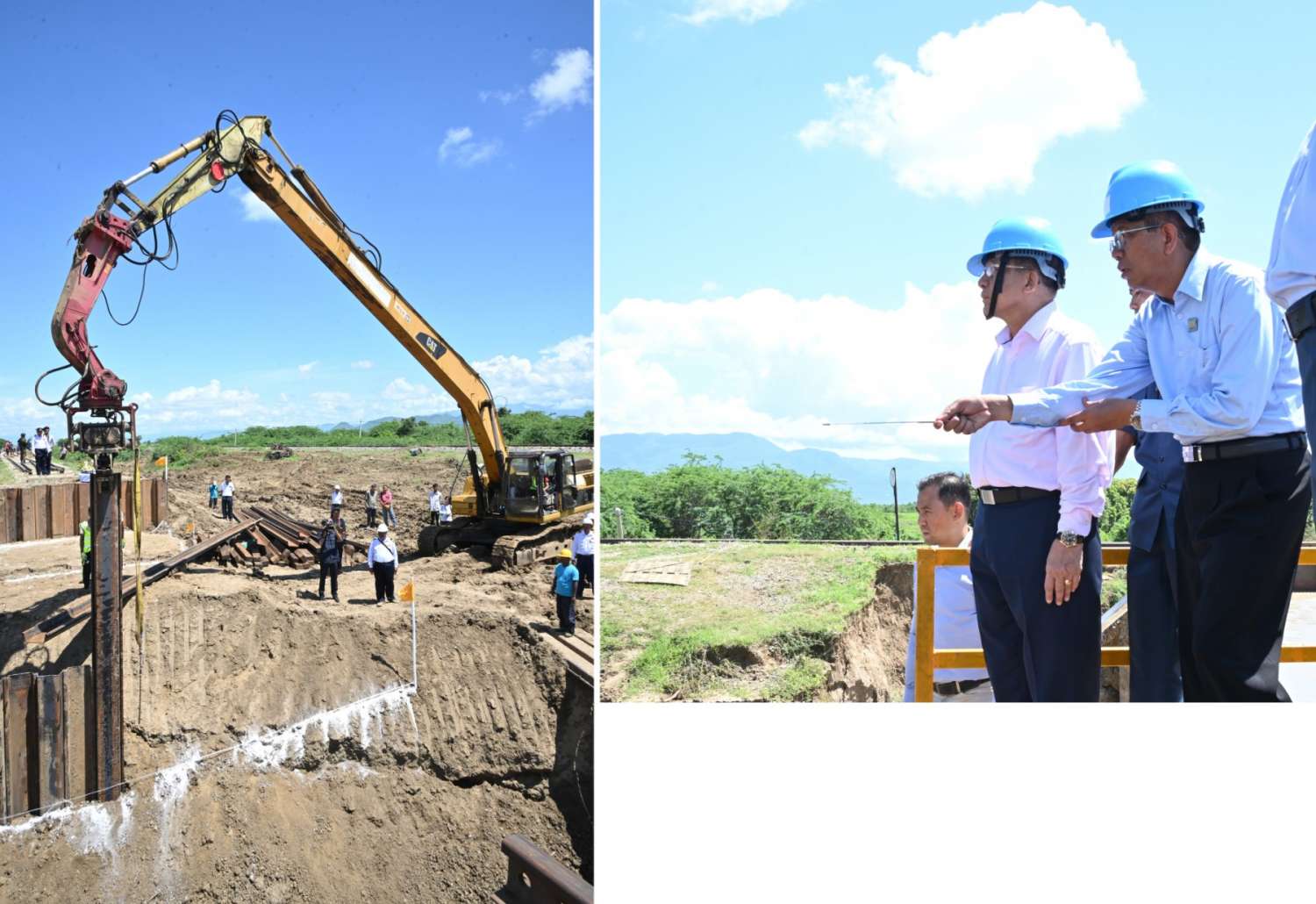 ယင်းနောက် နိုင်ငံတော်စီမံအုပ်ချုပ်ရေးကောင်စီဥက္ကဋ္ဌ နိုင်ငံတော်ဝန်ကြီးချုပ်နှင့် အဖွဲ့ဝင်များသည် ရေကြီးရေလျှံမှုဖြစ်ပေါ်စဉ် ရေအလုံးအရင်းဖြင့် မြင့်တက်တိုက်စားခဲ့မှုကြောင့် တံတားအမှတ် ၆၉၁(အဆန်)၏ ရန်ကုန်ဘက်ခြမ်းတံတား ချဉ်းကပ်တာဘောင် ရေတိုက်စားပျက်စီးခဲ့မှုအား ရထားလမ်းဖြုတ်သိမ်း၍ စက်ယာဉ်ယန်တရားများဖြင့် တာဘောင်မြေဖို့ပြုပြင်ဆောင်ရွက်ခြင်းနှင့် သံလမ်းပြန်လည်ခင်းခြင်းလုပ်ငန်းဆောင်ရွက်နေမှု၊ တံတားအမှတ် ၆၉၁(အစုန်)၏ သံဘောင် ၄ ခုပြုတ်ကျခဲ့ပြီး တိုင်အမှတ် ၃ ရေစီးအားဖြင့် မျောပါပျက်စီးခဲ့မှုအား Triple Double Bailey တံတား (၉၀) ပေထိုး၍ ပြန်လည်ပြုပြင်ဆောင်ရွက်နေမှုလုပ်ငန်းခွင်သို့ နေရာရောက်ရှိပြီး လုပ်ငန်းဆောင်ရွက်နေမှုအခြေအနေများနှင့် ရေစီးအားကြောင့် ထိခိုက်ပျက်စီးခဲ့မှုများကို လိုက်လံကြည့်ရှုစစ်ဆေးကာ လုပ်ငန်းဆောင်ရွက်နေသူများအား ရင်းရင်းနှီးနှီးနှုတ်ဆက်သည်။