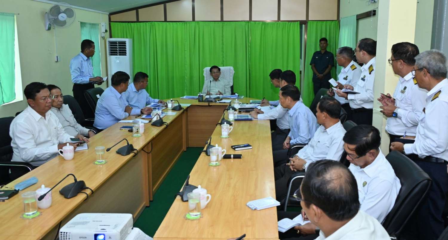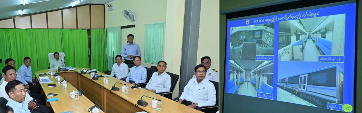 ဦးစွာ နိုင်ငံတော်စီမံအုပ်ချုပ်ရေးကောင်စီဥက္ကဋ္ဌ နိုင်ငံတော်ဝန်ကြီးချုပ်အား စက်ရုံအစည်းအဝေးခန်းမတွင် နိုင်ငံတော်စီမံအုပ်ချုပ်ရေးကောင်စီဝင်၊ ပို့ဆောင်ရေးနှင့်ဆက်သွယ်ရေးဝန်ကြီးဌာန၊ ပြည်ထောင်စုဝန်ကြီး ဗိုလ်ချုပ်ကြီးမြထွန်းဦးက ရန်ကုန်မြို့ပတ်လမ်း အဆင့်မြှင့်တင်ရေးစီမံကိန်း၏ လုပ်ငန်းဆောင်ရွက်မှုအခြေအနေများနှင့်ပတ်သက်၍ မြို့ပတ်ဒီဇယ်စက်ခေါင်းရုံ (အင်းစိန်) ၏ သမိုင်းအကျဉ်းနှင့် အချက်အလက်များ၊ မြို့ပတ်ရထားလမ်း၏သမိုင်းကြောင်းနှင့် အဆင့်မြှင့်တင်ရေးစီမံကိန်း၏ သမိုင်းကြောင်းများ၊ မြို့ပတ်ရထားများပြေးဆွဲသွားမည့်အစီအစဉ်များနှင့် ရထားလမ်းဆိုင်ရာအဆောက်အဦများ၊ ရထားလမ်းတစ်လျှောက် ဘေးအန္တရာယ်ကင်းရှင်းရေးဆိုင်ရာ ဆောင်ရွက်ထားရှိမှုများကိုလည်းကောင်း၊ ရန်ကုန်မြို့ပတ်ရထားလမ်းတစ်လျှောက် လျှပ်စစ်ရထားပြေးဆွဲနိုင်ရေးအတွက် ဆောင်ရွက်ထားရှိမှုအခြေအနေများနှင့်ပတ်သက်၍ လုပ်ငန်းဆောင်ရွက်ခဲ့မှုအခြေအနေများနှင့် လေ့လာရေးအဖွဲ့၏တွေ့ရှိချက်များ၊ မြို့ပတ်လျှပ်စစ်ရထားအတွက် သုံးသပ်တင်ပြချက်များကိုလည်းကောင်း၊ ဒုတိယဝန်ကြီးဦးအောင်မြိုင်က အဓိကမီးရထားလမ်းပိုင်းများ၌ မြန်နှုန်းမြှင့်တင်မောင်းနှင်နိုင်ရေး ဆောင်ရွက်လျက်ရှိမှုအခြေအနေများနှင့်ပတ်သက်၍ မြန်မာ့မီးရထား၏နောက်ခံအခြေအနေ၊ လမ်းပိုင်းဆိုင်ရာအချက်အလက်များနှင့် လိုအပ်ချက်များ၊ စက်ခေါင်း၊ တွဲနှင့် DEMU (Rolling Stock) များ၏ စက်မှုပိုင်းဆိုင်ရာလိုအပ်ချက်များ၊ အချက်ပြနှင့်သွားလာရေးစနစ်ဆိုင်ရာလိုအပ်ချက်များနှင့် သုံးသပ်ချက်များကိုလည်းကောင်း၊ မြန်မာ့မီးရထား၊ တိုင်းအသီးသီးရှိလမ်းပိုင်းများတွင် ကွန်ကရစ်ဇလီဖားတုံးများ ထုတ်လုပ်၊ လဲလှယ်နိုင်ရေး ဆောင်ရွက်မည့်အစီအမံနှင့်ပတ်သက်၍ ကွန်ကရစ်ဇလီဖားစက်ရုံများ၏ထုတ်လုပ်နိုင်မှုနှင့် ဖြန့်ဝေနိုင်မှု၊ လမ်းပိုင်းများ၌ ကွန်ကရစ်ဇလီဖားတုံးများထည့်သွင်းထားရှိမှု၊ လမ်းပိုင်းများအားလုံးတွင် သံလမ်းတစ်ဆက်လျှင် ကွန်ကရစ်ဇလီဖား ၂၁ တုံး အပြည့်ဖြည့်တင်းနိုင်ရေးအတွက် ထပ်မံလိုအပ်ချက်များကိုလည်းကောင်း အသီးသီးရှင်းလင်းတင်ပြကြသည်။
