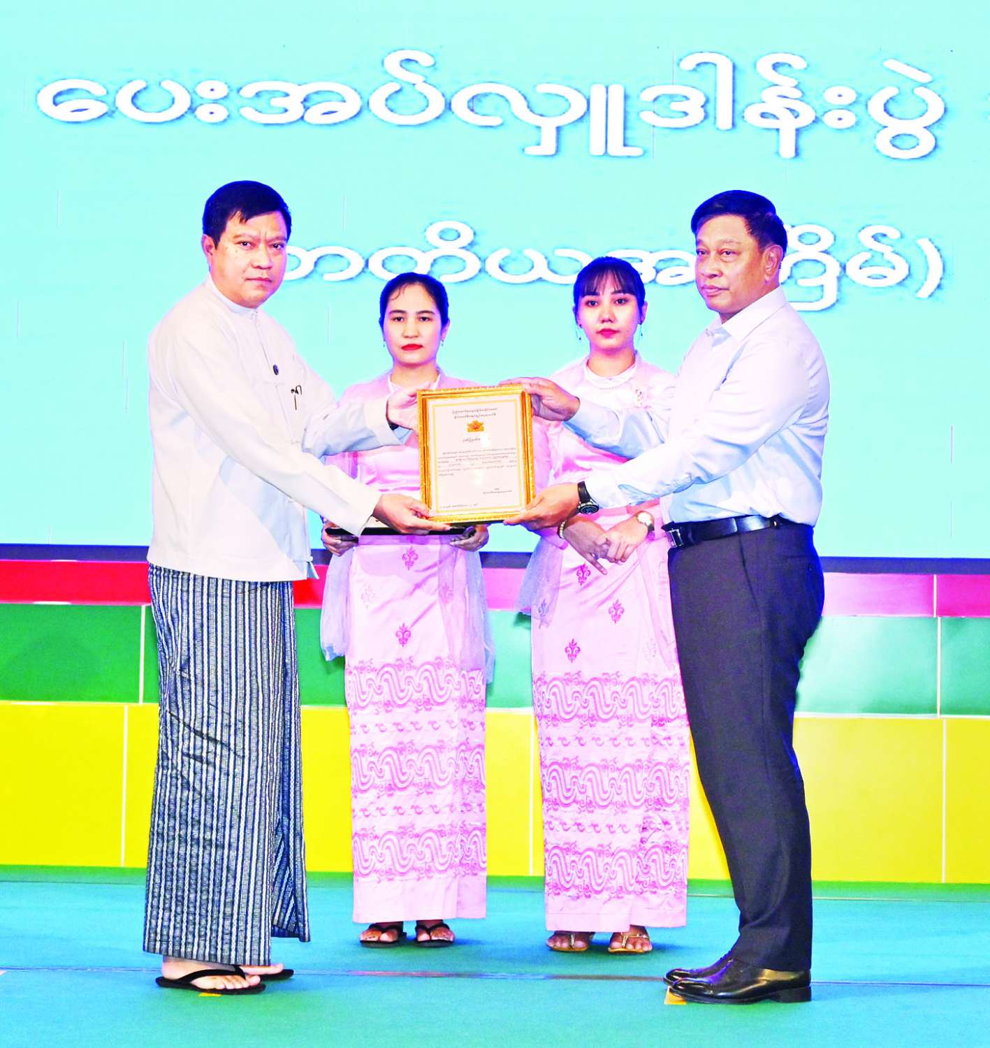 ထို့နောက် ရေဘေးဒဏ်သင့်ခဲ့ရသည့် ဒေသများ၌ ကူညီကယ်ဆယ်ရေးနှင့် ပြန်လည်ထူထောင်ရေးလုပ်ငန်းများ ဆောင်ရွက်ရန်အတွက် ဝန်ကြီးဌာနများ၊ တိုင်းဒေသကြီးနှင့်ပြည်နယ်အစိုးရအဖွဲ့များနှင့် ဝန်ထမ်းများ၊ ပြည်တွင်းပြည်ပ စေတနာရှင်၊ အလှူရှင်များက ပြန်လည်ထူထောင်ရေးပစ္စည်းများနှင့် အလှူငွေများကို ပေးအပ်လှူဒါန်းကြရာ နိုင်ငံတော်စီမံအုပ်ချုပ်ရေးကောင်စီဥက္ကဋ္ဌ နိုင်ငံတော်ဝန်ကြီးချုပ် ဗိုလ်ချုပ်မှူးကြီး မင်းအောင်လှိုင် က လက်ခံရယူပြီး ဂုဏ်ပြုမှတ်တမ်းလွှာ ပြန်လည်ပေးအပ်သည်။