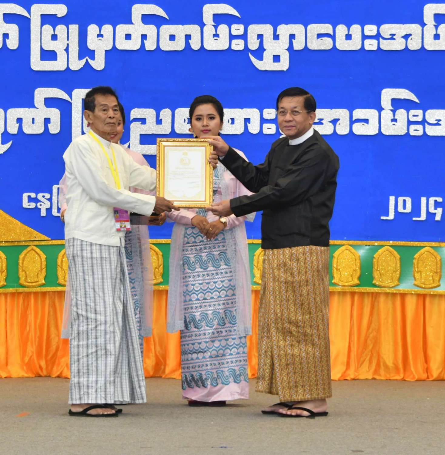 ယင်းနောက် နိုင်ငံတော်စီမံအုပ်ချုပ်ရေးကောင်စီဥက္ကဋ္ဌ နိုင်ငံတော်ဝန်ကြီးချုပ်က အဆိုအကဲဖြတ်လုပ်ငန်းအဖွဲ့ကိုယ်စား ဥက္ကဋ္ဌဒေါ်သင်းသင်းမြတ်၊ အကအကဲဖြတ် လုပ်ငန်းအဖွဲ့ကိုယ်စား ဥက္ကဋ္ဌဦးအောင်တင်ဝင်း၊ အရေးအကဲဖြတ်လုပ်ငန်းအဖွဲ့ကိုယ်စား ဥက္ကဋ္ဌဦးမောင်မောင်လတ်နှင့် အတီးအကဲဖြတ်လုပ်ငန်းအဖွဲ့ကိုယ်စား ဥက္ကဋ္ဌဦးအောင်ကိန်း၊ မြန်မာ့ရိုးရာယဉ်ကျေးမှု အဆို၊ အက၊ အရေး၊ အတီးပြိုင်တွင် ပထမအကြိမ်မှ (၂၅)ကြိမ်မြောက် ငွေရတုအထိမ်းအမှတ်အထိ အကဲဖြတ်ပညာရှင် အဖြစ်တာဝန်ထမ်းဆောင်ခဲ့သည့် စည်သူဒေါ်ထား၊ ပြည်ထောင်စုတိုင်းရင်းသားများ၏ ရိုးရာသံစုံတီးဝိုင်းဂီတမှူးသာသနာရေးနှင့်ယဉ်ကျေးမှုဝန်ကြီးဌာနမှ ဒုတိယအမြဲတမ်းအတွင်းဝန် ဦးလှိုင်ဝင်းမောင်၊ အဆိုပြိုင်ပွဲ၌ ဝါသနာရှင်(ပထမတန်း)အဆင့်တွင် အသက်အကြီးဆုံးပြိုင်ပွဲဝင် ဦးတင်အုန်း၊ အကပြိုင်ပွဲ၌ အခြေခံပညာအဆင့်(အသက် ၁၀ နှစ်မှ ၁၅ နှစ်အတွင်း) အသက်အငယ်ဆုံးပြိုင်ပွဲဝင် မောင်ဟိန်းလင်းမာန်သွေး၊ ဇာတ်တော်ကြီးပြိုင်ပွဲအတွက် ကူညီပံ့ပိုးသူ မြန်မာနိုင်ငံသဘင်အစည်းအရုံး(ဗဟို)ဥက္ကဋ္ဌ ဦးဖိုးချစ်၊ တိုင်းဒေသကြီးနှင့် ပြည်နယ်များမှအုပ်ချုပ်သူများနှင့် အခမ်းအနားမှူးများကို ဂုဏ်ပြုမှတ်တမ်းလွှာများပေးအပ်ချီးမြှင့်သည်။