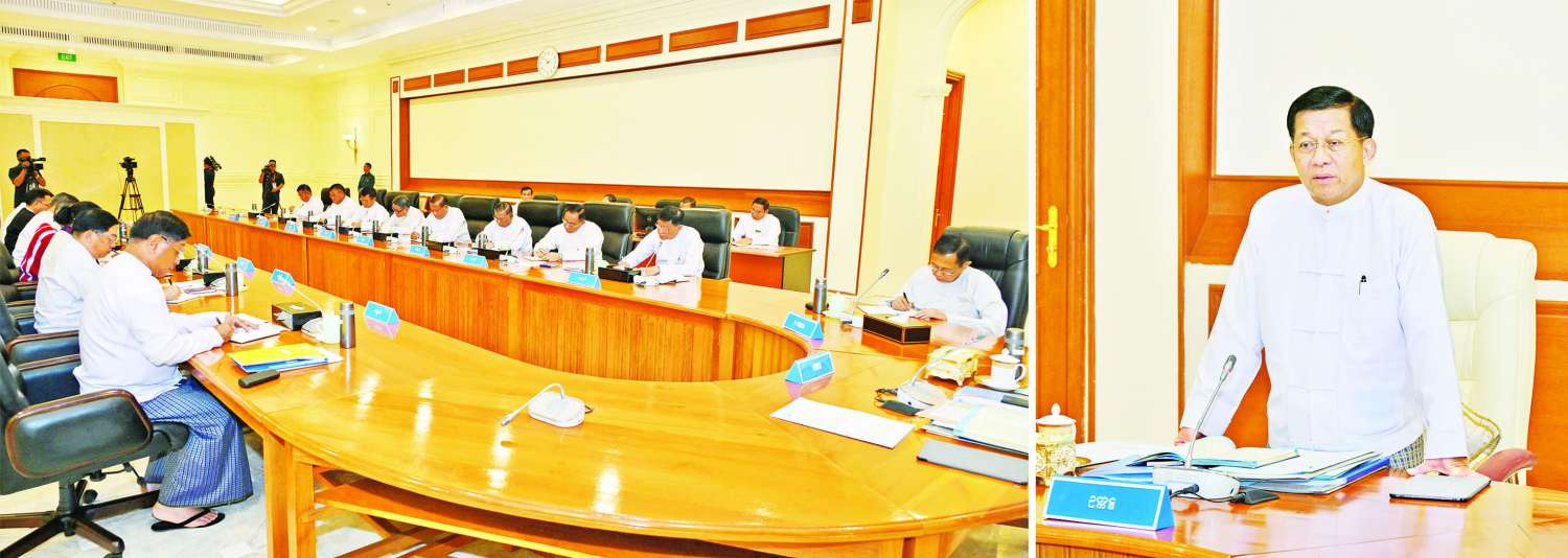 နိုင်ငံတော်စီမံအုပ်ချုပ်ရေးကောင်စီအစည်းအဝေးကို ယနေ့နံနက်ပိုင်းတွင် နေပြည်တော်ရှိ နိုင်ငံတော်စီမံအုပ်ချုပ်ရေးကောင်စီဥက္ကဋ္ဌရုံး အစည်းအဝေးခန်းမ၌ကျင်းပရာ နိုင်ငံတော်စီမံအုပ်ချုပ်ရေးကောင်စီဥက္ကဋ္ဌ နိုင်ငံတော်ဝန်ကြီးချုပ် ဗိုလ်ချုပ်မှူးကြီး မင်းအောင်လှိုင် တက်ရောက်အမှာစကားပြောကြားသည်။