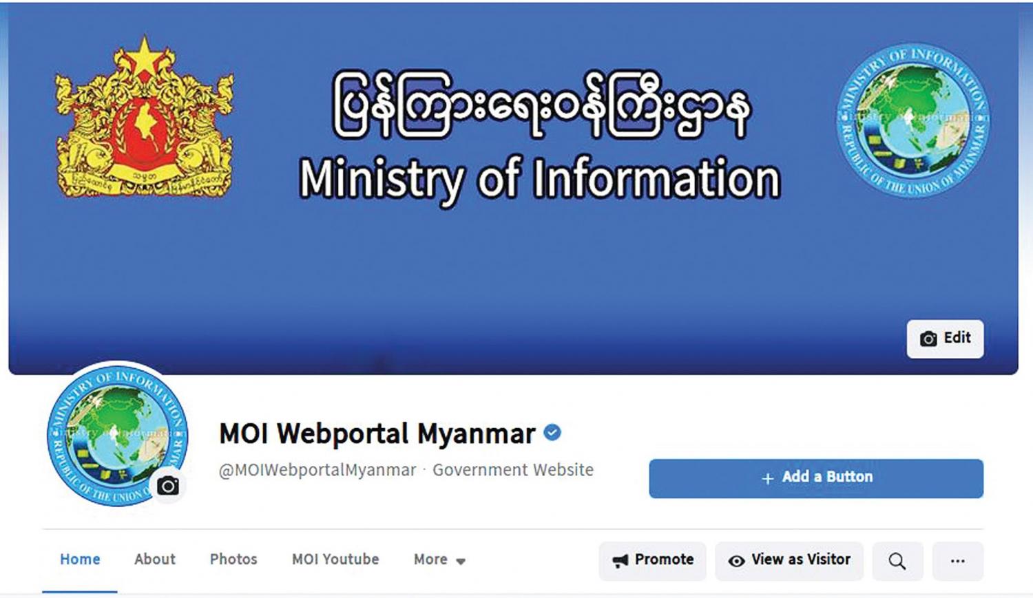 ဥပဒေတွေ၊ ကြေညာချက်တွေ၊ အရေးပေါ်သတိပေး ချက်တွေ၊ ကျန်းမာရေးအသိပေးချက်တွေ စတာတွေကို ပြည်သူတွေသိအောင် ပြန်ကြားရေးဝန်ကြီးဌာနရဲ့ အဓိက ဝက်ဘ်ဆိုက်အပြင် မြန်မာနိုင်ငံမှာ လူသုံးများပြီး ပြည်သူအကြား ပျံ့နှံ့လွယ်တဲ့ social media platform တွေကနေ သတင်းအချက်အလက်တွေ ထုတ်ပြန်ပေး နေတာလည်း ဖြစ်ပါတယ်။ MOI Webportal Myanmar ဆိုပြီး ဖေ့စ်ဘွတ်ကနေလည်း နေ့စဉ် သတင်းဦး၊ သတင်း ထူးတွေကို တင်ဆက်ပေးနေတာပါ။