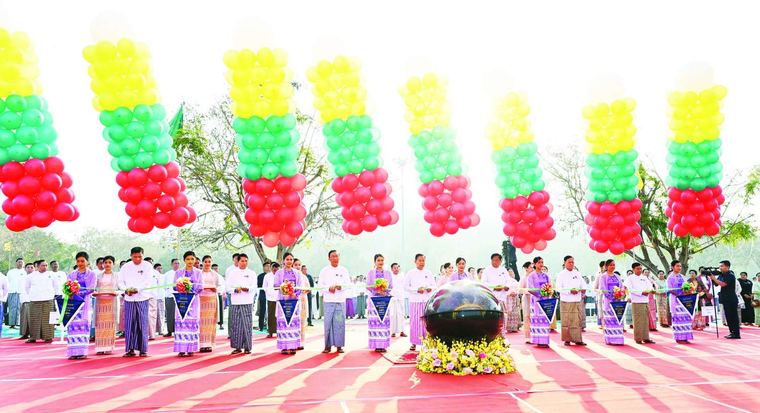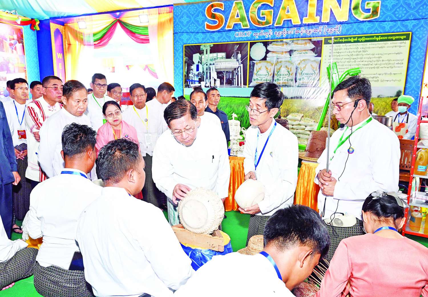 အခမ်းအနားသို့ နိုင်ငံတော်စီမံအုပ်ချုပ်ရေးကောင်စီဥက္ကဋ္ဌ နိုင်ငံတော်ဝန်ကြီးချုပ်နှင့်အတူ အသေးစား၊ အငယ်စားနှင့် အလတ်စား စီးပွားရေးလုပ်ငန်းများဖွံ့ဖြိုးတိုးတက်ရေးလုပ်ငန်းကော်မတီဥက္ကဋ္ဌ နိုင်ငံတော်စီမံအုပ်ချုပ်ရေးကောင်စီ ဒုတိယဥက္ကဋ္ဌ ဒုတိယဝန်ကြီးချုပ် ဒုတိယဗိုလ်ချုပ်မှူးကြီး စိုးဝင်းနှင့်ဇနီး ဒေါ်သန်းသန်းနွယ်၊ ကောင်စီတွဲဖက်အတွင်းရေးမှူး ဗိုလ်ချုပ်ကြီး ရဲဝင်းဦး၊ ကောင်စီအဖွဲ့ဝင်များနှင့် ဇနီးများ၊ ပြည်ထောင်စုဝန်ကြီးများနှင့် ဇနီးများ၊ ပြည်ထောင်စုအဆင့် ပုဂ္ဂိုလ်များနှင့်ဇနီးများ၊ တိုင်းဒေသကြီးနှင့် ပြည်နယ်ဝန်ကြီးချုပ်များနှင့် ဇနီးများ၊ ကာကွယ်ရေးဦးစီးချုပ်ရုံးမှ အဆင့်မြင့်တပ်မတော်အရာရှိကြီးများနှင့်ဇနီးများ၊ ဒုတိယဝန်ကြီးများ၊ တိုင်းဒေသကြီးနှင့် ပြည်နယ်များမှ MSME အေဂျင်စီဥက္ကဋ္ဌများနှင့် တာဝန်ရှိသူများ၊ အသင်းအဖွဲ့များမှ တာဝန်ရှိသူများနှင့် ပြခန်းတာဝန်ခံများ၊ ဌာနဆိုင်ရာအကြီးအကဲများ၊ တိုင်းရင်းသားယဉ်ကျေးမှုအကအဖွဲ့များနှင့် ဒေသခံပြည်သူများ စည်ကားသိုက်မြိုက်စွာ တက်ရောက်ကြသည်။