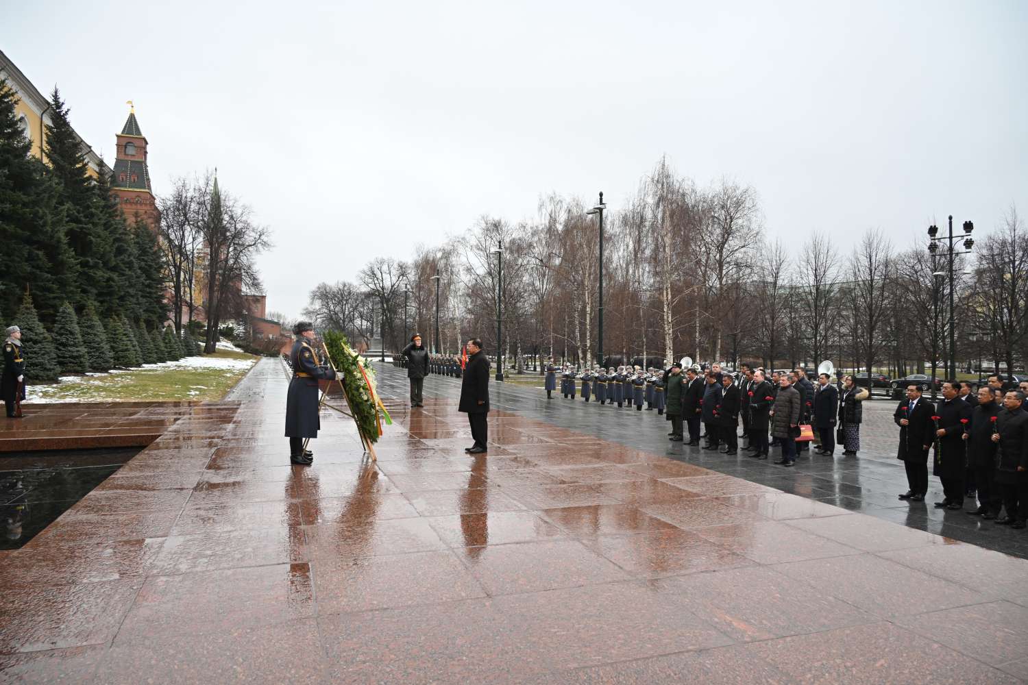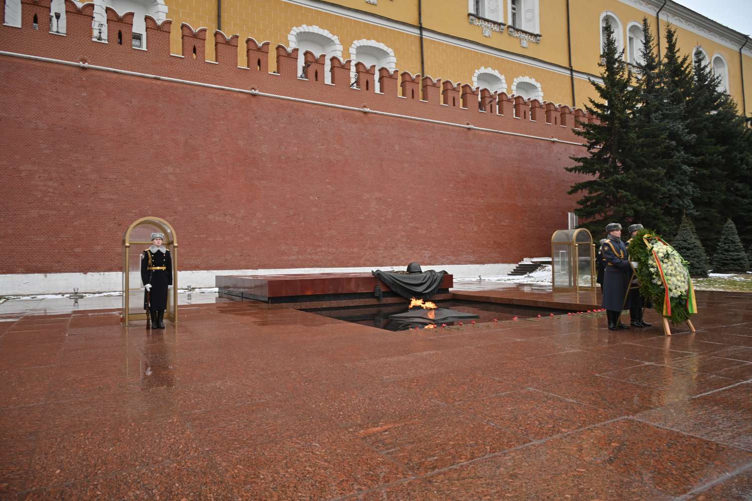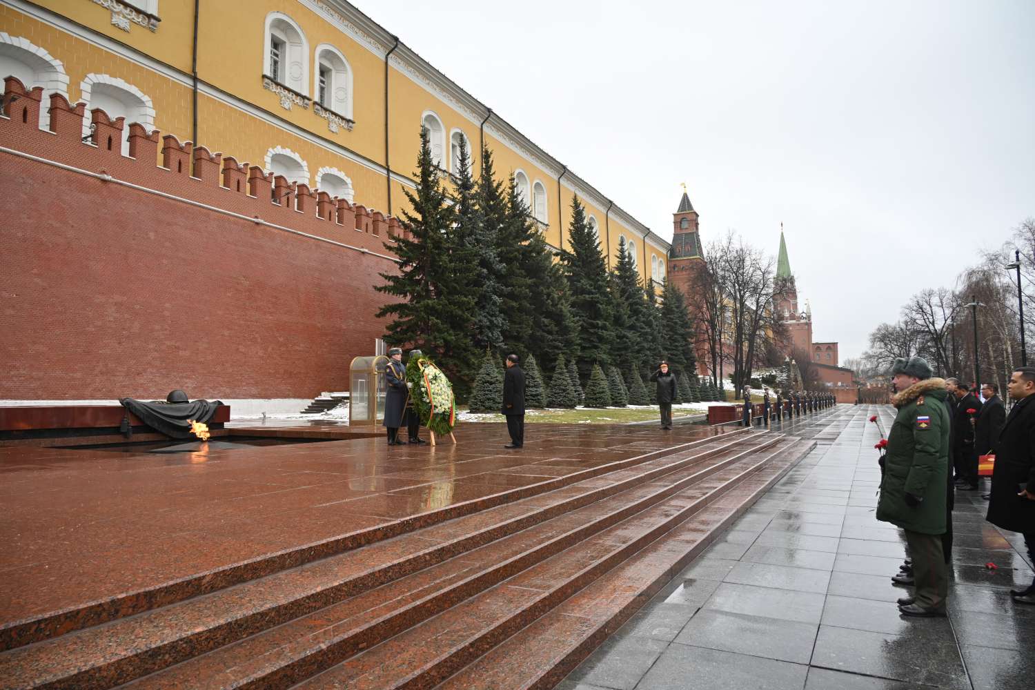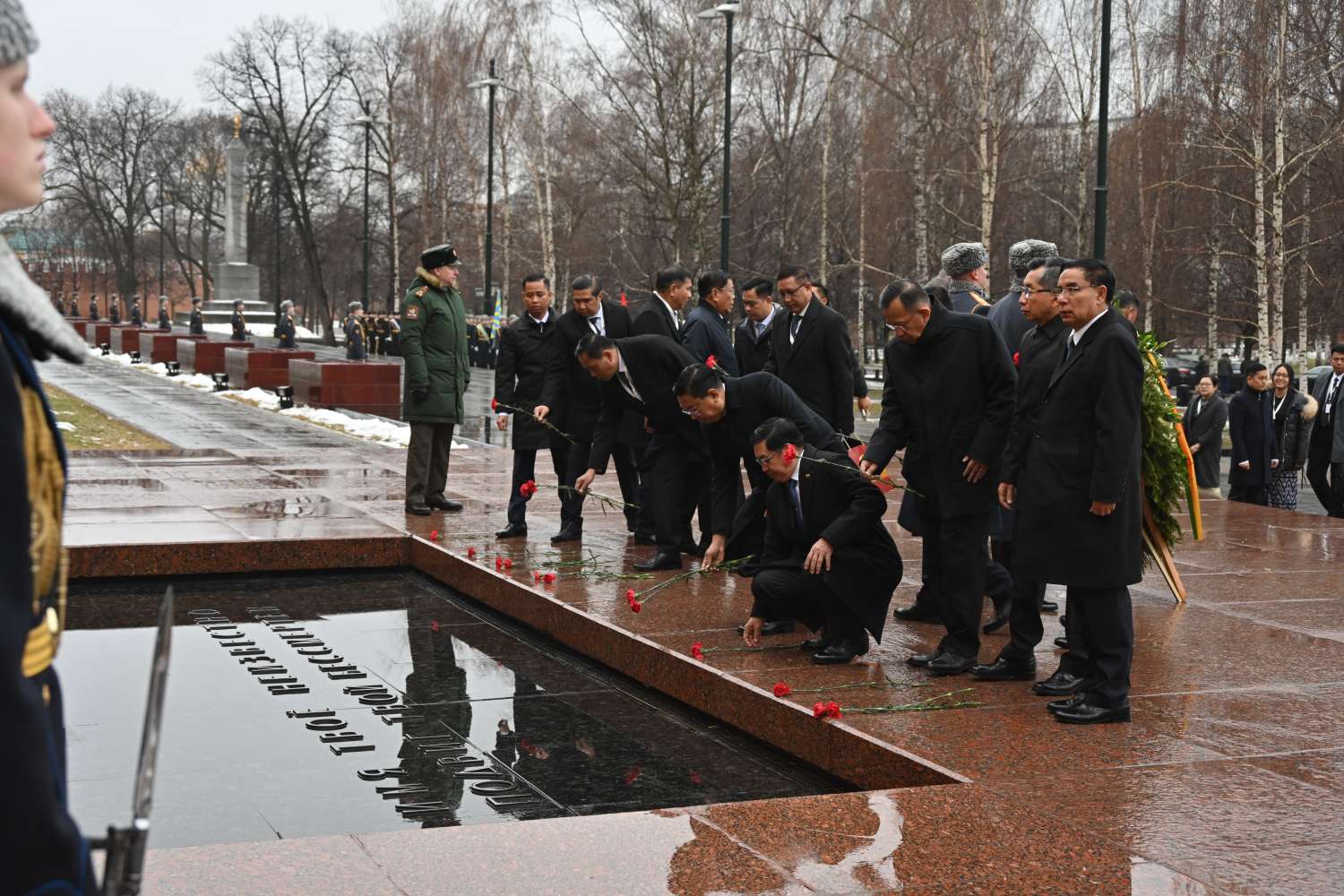 ရုရှားဖက်ဒရေးရှင်းနိုင်ငံ၊ မော်စကိုမြို့သို့ တရားဝင်ချစ်ကြည်ရေးခရီးရောက်ရှိနေသည့် နိုင်ငံတော်စီမံအုပ်ချုပ်ရေးကောင်စီဥက္ကဋ္ဌ နိုင်ငံတော်ဝန်ကြီးချုပ် ဗိုလ်ချုပ်မှူးကြီး မင်းအောင်လှိုင်သည် ယနေ့နံနက်ပိုင်းတွင် မော်စကိုမြို့ရှိ အညတရစစ်သည်ဂူဗိမာန်၌ လွမ်းသူပန်းခွေချအလေးပြုသည်။