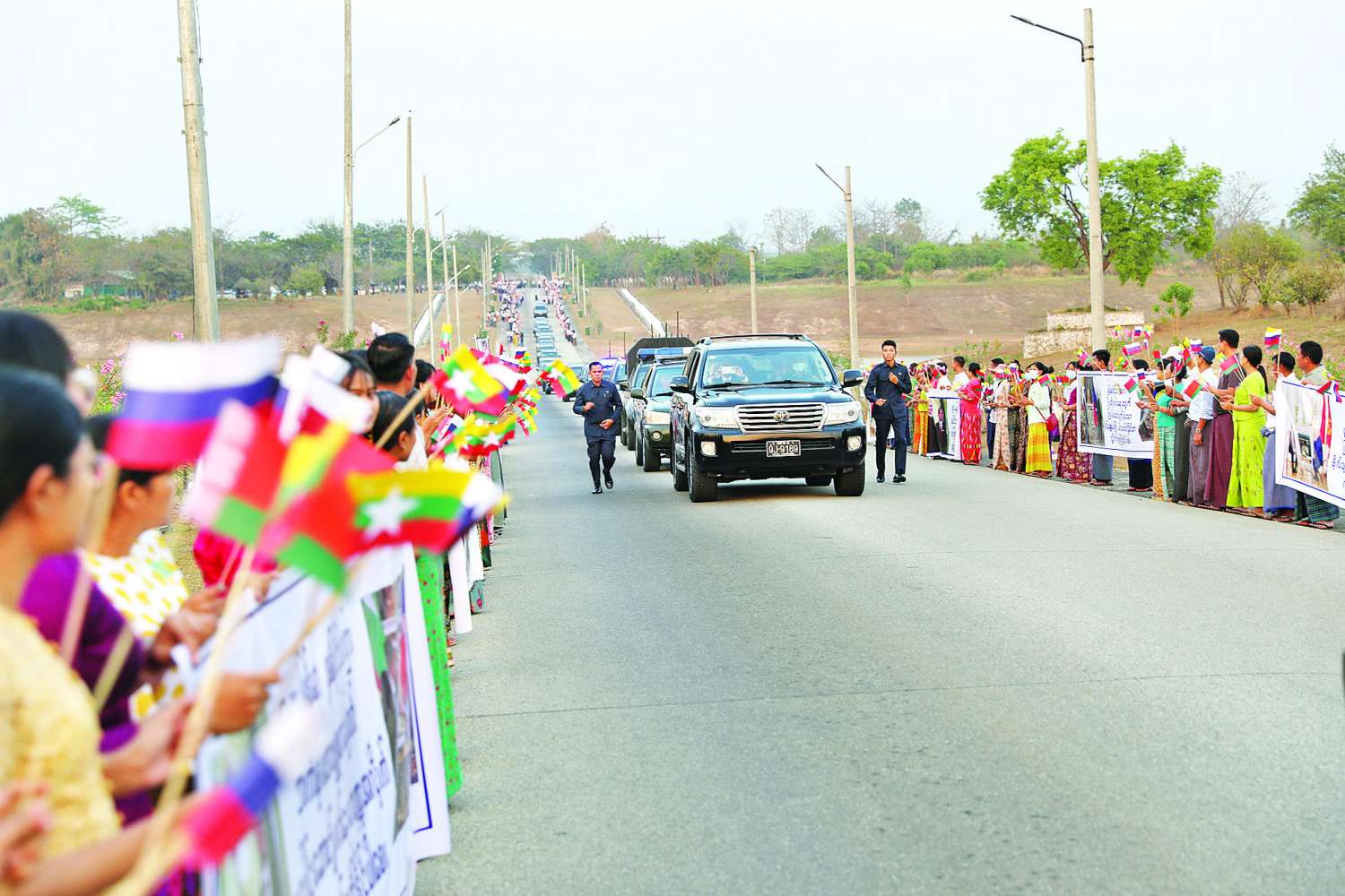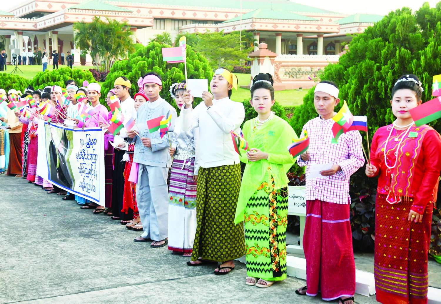 ထို့ပြင် နိုင်ငံတော်စီမံအုပ်ချုပ်ရေးကောင်စီဥက္ကဋ္ဌ နိုင်ငံတော်ဝန်ကြီးချုပ် ဦးဆောင်သည့် မြန်မာချစ်ကြည်ရေးကိုယ်စားလှယ်အဖွဲ့သည် နေပြည်တော်မှ ရုရှားဖက်ဒရေးရှင်းနိုင်ငံ နိုဗိုစီဗစ်မြို့၊ မော်စကိုမြို့၊ စိန့်ပီတာစဘတ်မြို့၊ ဆာမားရားမြို့နှင့် ဘယ်လာရုစ်သမ္မတနိုင်ငံ မင့်စ်မြို့များသို့ သွားရောက်ခဲ့ပြီး မိမိတို့မြန်မာနိုင်ငံနှင့် ရာသီဥတုအနေအထားကွာဟချက်အရ အပူချိန်အနုတ် ၂ မှ အနုတ် ၁၂ ဒီဂရီ စင်တီဂရိတ် (အေးခဲသော) အနေအထားအထိရှိသည့် ရုရှား ဖက်ဒရေးရှင်းနိုင်ငံနှင့် ဘယ်လာရုစ်သမ္မတနိုင်ငံတို့သို့ အသွားအပြန် မိုင်ပေါင်းတစ်သောင်းကျော်ခန့်အထိ သွားရောက်၍ နိုင်ငံတော်အကျိုးစီးပွားကို တစိုက်မတ်မတ် ဦးတည်ပြီး ခရီးစဉ်အတွင်း နေ့မအား ညမနားဖြင့် နိုင်ငံများအကြား စိုက်ပျိုးရေးကဏ္ဍ၊ စီးပွားရေးကဏ္ဍ၊ ကုန်သွယ်ရေးကဏ္ဍ၊ ပညာသင်ကြားမှု မြှင့်တင်ရေးဆိုင်ရာကိစ္စ၊ ခရီးသွားကဏ္ဍများ တိုးမြှင့်ရေးဆိုင်ရာကိစ္စများတွင် ပြည်သူအချင်းချင်း၊ လုပ်ငန်းရှင်များအချင်းချင်း ပူးပေါင်းဆောင်ရွက်နိုင်မည့်အခွင့်အလမ်းများ ပေါ်ပေါက်လာစေရေးအတွက် ကြိုးပမ်းအားထုတ်ဆောင်ရွက်ခဲ့ကြသည့် နိုင်ငံတော် စီမံအုပ်ချုပ်ရေးကောင်စီဥက္ကဋ္ဌ နိုင်ငံတော်ဝန်ကြီးချုပ် ဦးဆောင်သည့် မြန်မာအဆင့်မြင့်ကိုယ်စားလှယ်အဖွဲ့အား ဂုဏ်ပြုကြိုဆိုသောအားဖြင့် တိုင်းရင်းသား၊ တိုင်းရင်းသူ သားငယ်၊ သမီးငယ်လေးများ၊ ဘင်ခရာ၊ ပန်းဖွားအကအဖွဲ့များ၊ ရိုးရာအကအဖွဲ့များ၊ အနုပညာရှင်များ၊ ဒေသခံပြည်သူများက လေဆိပ်တွင် အသင့်စောင့်ကြို၍ လေယာဉ်အဆင်းမှ VIP ဆောင်အထိလည်းကောင်း၊ တပ်မတော်လေဆိပ်မှ အဝိုင်းပတ်နေရာအထိလည်းကောင်း “ရုရှား-မြန်မာ နှစ်နိုင်ငံအကြား ချစ်ကြည်ရင်းနှီးမှု အဓွန့်ရှည်ပါစေ၊ ရုရှား-မြန်မာ နှစ်နိုင်ငံအကြား ဘက်စုံမဟာဗျူဟာမြောက် ပူးပေါင်းဆောင်ရွက်ရေးကဏ္ဍအလိုက် တိုးမြှင့်ဆောင်ရွက်နိုင်ပါစေ၊ ရုရှား-မြန်မာ နှစ်နိုင်ငံဆက်ဆံရေး ပိုမိုတိုးတက်အောင် ဆောင်ရွက်ခဲ့သည့် နစကဥက္ကဋ္ဌ နိုင်ငံတော်ဝန်ကြီးချုပ် ဗိုလ်ချုပ်မှူးကြီး မင်းအောင်လှိုင်အား လှိုက်လှဲစွာ ကြိုဆိုပါသည်၊ ရုရှားမြန်မာ ချစ်ကြည်စွာ တွဲလက်မြဲပါစေ၊ မြန်မာ-ရုရှားပူးပေါင်းအား မုချအောင်မြင်ပါစေ၊ ဘယ်လာရုစ်- မြန်မာချစ်ကြည်ရေး အဓွန့်ရှည်တည်တံ့ပါစေ၊ မြန်မာနိုင်ငံ ဘက်စုံဖွံ့ဖြိုးတိုးတက်ရေးအတွက် ကြိုးပမ်းဆောင်ရွက်ခဲ့သော ဗိုလ်ချုပ်မှူးကြီး မင်းအောင်လှိုင်အား လှိုက်လှဲစွာ ကြိုဆိုပါ၏၊ ရုရှား-မြန်မာ ချစ်ကြည်ရေးကို ခိုင်မြဲစေသော နိုင်ငံတော်ဝန်ကြီးချုပ်နှင့် အဖွဲ့ဝင်များအား လှိုက်လှဲစွာ ကြိုဆိုပါ၏” ဟူသော စာတန်းများပါရှိသည့် ဗွီနိုင်း