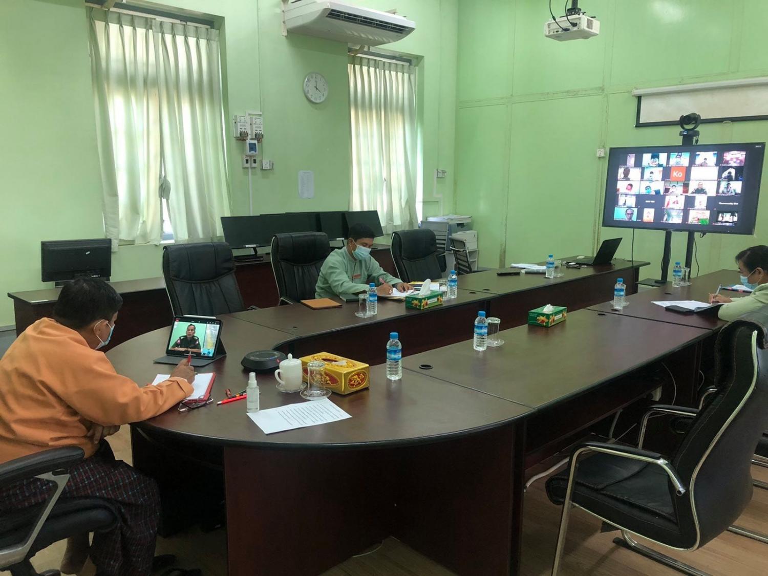 ပဲခူးတိုင်းဒေသကြီးအစိုးရအဖွဲ့ရုံး၊ အစည်းအဝေးခန်းမ၌ ယမန်နေ့ မွန်းလွဲ ၃ နာရီခွဲက ကိုဗစ်-၁၉ ထိန်းချုပ်ရေးနှင့် အရေးပေါ်တုံ့ပြန်ရေးကော်မတီ အစည်းအဝေးအား Zoom Meeting ဖြင့် ကျင်းပပြုလုပ်ခဲ့သည်။