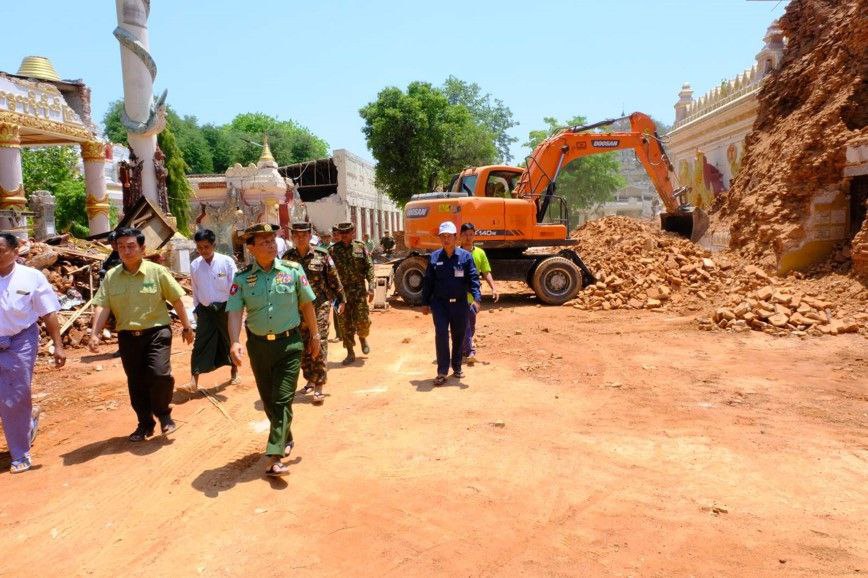 မြန်မာနိုင်ငံတွင်လှုပ်ခတ်ခဲ့သော မန္တလေးငလျင်ကြီးကြောင့် လမ်းတံတား၊ အဆောက်အအုံများထိခိုက်ပျက်စီးခဲ့ရသည့်နေရာများ၌ ကူညီကယ်ဆယ်ရေးနှင့် ပြန်လည်ထူထောင်ရေးလုပ်ငန်းများကို တိုင်းစစ်ဌာနချုပ်အသီးသီးမှ တပ်မတော်သားများ၊ မြန်မာနိုင်ငံရဲတပ်ဖွဲ့ဝင်များ၊ မီးသတ်တပ်ဖွဲ့ဝင်များ၊ ပြည်ပနိုင်ငံများမှ ကူညီကယ်ဆယ်ရေးအဖွဲ့များ၊ ဌာနဆိုင်ရာဝန်ထမ်းများ၊ လူမှုကူညီရေးအသင်း/ အဖွဲ့များနှင့် ဒေသခံပြည်သူများပူးပေါင်း၍ အချိန်နှင့်တစ်ပြေးညီ ကူညီဆောင်ရွက်ပေးလျက် ရှိသည်။