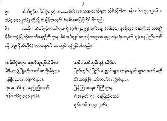 ဝန်ကြီးဌာန ကြေညာချက်များ