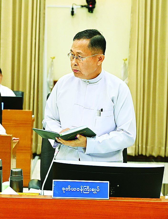 လျှပ်စစ်စွမ်းအင်ဆိုင်ရာ တင်ပြချက်များနှင့် ပတ်သက်၍ နိုင်ငံတော်စီမံအုပ်ချုပ်ရေးကောင်စီဥက္ကဋ္ဌ နိုင်ငံတော်ဝန်ကြီးချုပ်က ဖြည့်စွက်ပြောကြားရာတွင် လျှပ်စစ်နှင့်ပတ်သက်၍ မိမိတို့နိုင်ငံတွင် လိုအပ်ချက်ပြည့်မီမှုမရှိသေးကြောင်း၊ လျှပ်စစ်စွမ်းအင်မရှိပါက ဖွံ့ဖြိုးတိုးတက်ရေးလုပ်ငန်းများကို ထိုက်သင့်သလောက်ဆောင်ရွက်နိုင်မည် မဟုတ်ကြောင်း၊ မိမိတို့နိုင်ငံအနေဖြင့် လျှပ်စစ်ဓာတ်အားဖူလုံစွာရရှိရေးအတွက် လျှပ်စစ်ဓာတ်အားပေးစီမံကိန်းများကို ယခင်ကာလများကတည်းကပင် ချမှတ်ဆောင်ရွက်ခဲ့ကြောင်း၊ သို့သော်လည်း အဆိုပါရှိရင်းစွဲလျှပ်စစ်ဓာတ်အားပေးစီမံကိန်းများကို အကြောင်းအမျိုးမျိုးကြောင့် ဆက်လက်အကောင်အထည်ဖော်ဆောင်နိုင်မှု မရှိခဲ့ခြင်းကြောင့် လျှပ်စစ်ဓာတ်အားဖူလုံမှုမရှိခြင်းဖြစ်ကြောင်း၊ ထင်ရှားသည့် ဥပမာတစ်ခုကို ပြမည်ဆိုပါက မြစ်ဆုံရေအားလျှပ်စစ်စီမံကိန်းရပ်ဆိုင်းခဲ့ရမှုမရှိပါက မဂ္ဂါဝပ် ၆၀၀၀ ရရှိမည်ဖြစ်ကြောင်း၊ ရှိပြီးဖြစ်သည့် လျှပ်စစ်ဓာတ်အားပေးစက်ရုံများနှင့် မြစ်ဆုံရေအားလျှပ်စစ်စီမံကိန်းတို့ ပေါင်းစပ်လိုက်မည်ဆိုပါက လျှပ်စစ်ဓာတ်အားလိုအပ်ချက်ပြည့်မီရုံသာမက ကျော်လွန်သည့် အနေအထားသို့ပင် ရောက်ရှိနိုင်မည်ဖြစ်ကြောင်း၊ မိမိတို့ကဲ့သို့ ဖွံ့ဖြိုးဆဲနိုင်ငံများအတွက် ပြည့်ဖြိုးမြဲလျှပ်စစ်စွမ်းအင်ကို ထုတ်ယူသုံးစွဲခြင်းသည် အကောင်းဆုံးဖြစ်ကြောင်း၊ ပြည့်ဖြိုးမြဲစွမ်းအင်တွင် ရေအား၊ လေအားနှင့် နေအားဟူ၍ရှိကြောင်း၊ ရေအားလျှပ်စစ်စီမံကိန်းများကို မိမိတို့နိုင်ငံအတွင်း စီးဆင်းနေသည့် မြစ်ချောင်းများပေါ်၌ ဆောင်ရွက်၍ရနိုင်သည် ဖြစ်သော်လည်း အချို့သောနေရာများ၌ လုံခြုံရေးအခြေအနေအရ စီမံကိန်းများရပ်တန့်ထားရခြင်းများနှင့် လုပ်ငန်းဆောင်ရွက်၍ မရနိုင်သည်များလည်းရှိကြောင်း၊ ထို့ကြောင့် မိမိတို့အနေဖြင့် လုပ်ဆောင်၍ ရနိုင်သည့်နေရာများကို ဖော်ထုတ်၍ ဆောင်ရွက်သွားရန်လိုကြောင်း၊ အနိမ့်တမံ Low-Head Dam များ ပြုလုပ်၍လည်း ရေအားလျှပ်စစ်ထုတ်ယူ၍ရနိုင်မည်ဖြစ်ကြောင်း၊ မိမိတို့နိုင်ငံသည် နေသာသည့်နေ့ရက် များပြားသည့် နိုင်ငံတစ်ခုဖြစ်သဖြင့် နေရောင်ခြည်စွမ်းအင်သုံး ဆိုလာလျှပ်စစ်စွမ်းအင်ထုတ်ယူခြင်းကို ဆောင်ရွက်သင့်ကြောင်း၊ ဆိုလာထုတ်လုပ်ရေးလုပ်ငန်းများကိုလည်း ဆောင်ရွက်ရမည်ဖြစ်ပြီး ဆိုလာများသည် အနာဂတ်တွင် လိုအပ်ချက်ကြီးမားလာနိုင်ကြောင်း၊ တိုင်းဒေသကြီးနှင့် ပြည်နယ်များ၌လည်း Small Skill ဆိုလာစက်ရုံများကို ဆောင်ရွက်သင့်ကြောင်း၊ ပြည့်ဖြိုးမြဲစွမ်းအင်နှင့် ပတ်သက်၍ မဖြစ်မနေဆောင်ရွက်ရန် လိုအပ်သည်ဟူသည့် မူဝါဒကို ချမှတ်ဆောင်ရွက်သွားရန်လိုကြောင်း။