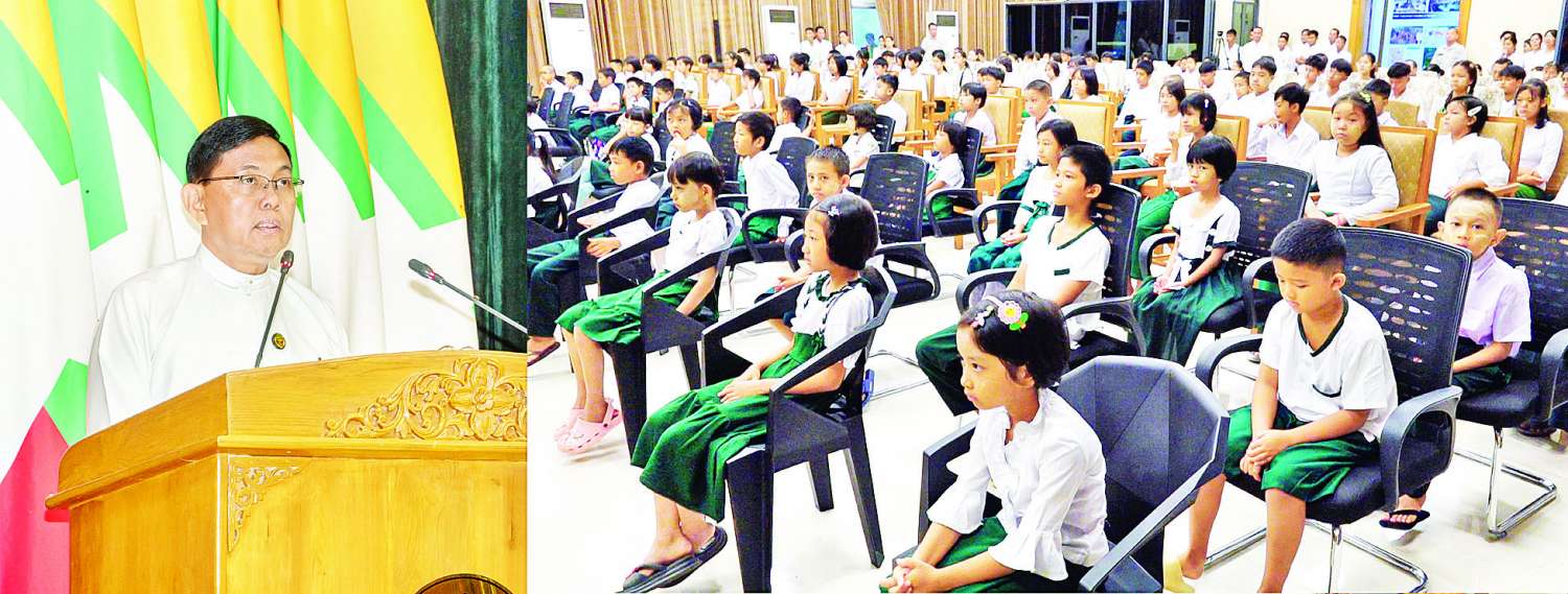 ဦးစွာ ပြည်ထောင်စုဝန်ကြီးက ယနေ့ကျင်းပသည့် ဆောက်လုပ်ရေးဝန်ကြီးဌာန ဝန်ထမ်းသားသမီးများအား ၂၀၂၅ - ၂၀၂၆ ပညာသင်နှစ်အတွက် KG မှ Grade–12 အထိ အခြေခံပညာကျောင်းများတွင် အဆင်ပြေချောမွေ့စွာ တက်ရောက်ပညာသင်ကြားနိုင်ရန် စာရေးကိရိယာများနှင့် ပညာသင်အထောက်အကူပစ္စည်းများ ပေးအပ်ခြင်းဖြစ် ကြောင်း၊ ဝန်ကြီးဌာနအနေဖြင့် ဝန်ထမ်းသား၊ သမီးများကျောင်းသွား / ကျောင်းပြန် လွယ်ကူအဆင်ပြေစေရန်နှင့် ဘေးအန္တရာယ်ကင်းရှင်းစေရန်အတွက် ကျောင်းကြို/ ပို့ကားများကိုလည်း စီစဉ်ဆောင်ရွက်ပေးမည်ဖြစ်ကြောင်း၊ ယခုကာလသည် ငလျင်ဘေးကြောင့် အိမ်နေရာအပြောင်း အရွှေ့နှင့်ကျောင်းနေရာ အပြောင်းအရွှေ့များရှိသော်လည်း ကျောင်းဖွင့်ရာသီအမီ ပညာသင်ကြားနိုင်ရေးကိုလည်း စီစဉ်ဆောင်ရွက်ပေးလျက်ရှိကြောင်း ပြောကြားသည်။