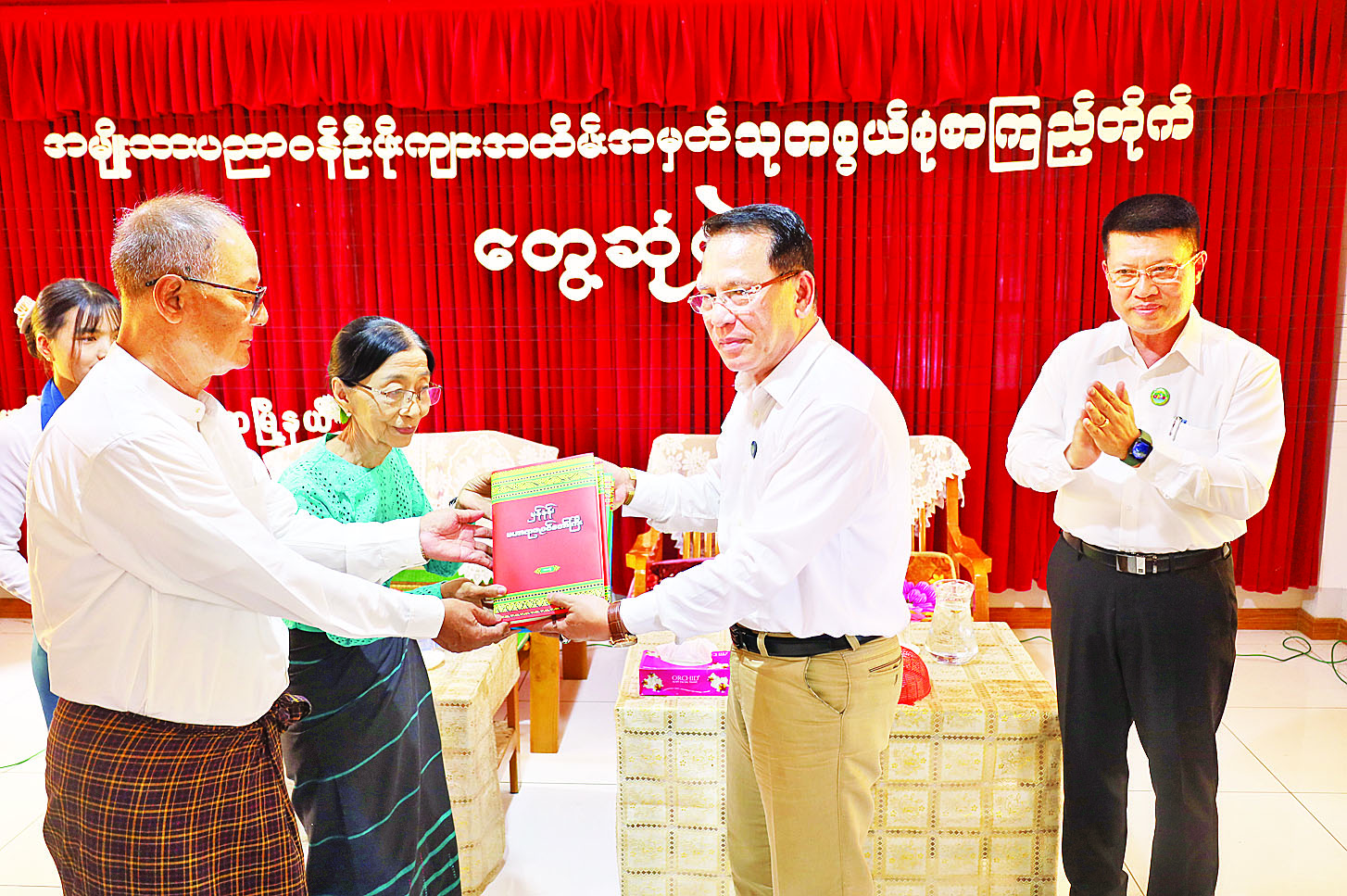 ယင်းနောက် ပြည်ထောင်စုဝန်ကြီးက နိုင်ငံတော်စီမံအုပ်ချုပ်ရေးကောင်စီဥက္ကဋ္ဌ နိုင်ငံတော်ဝန်ကြီးချုပ် ဗိုလ်ချုပ်မှူးကြီး မင်းအောင်လှိုင်နှင့် ဇနီးဒေါ်ကြူကြူလှ မိသားစုကလှူဒါန်းသည့် မှန်နန်းရာဇဝင်စာအုပ်များ၊ စာကြည့်တိုက်ဖွံ့ဖြိုးတိုးတက်ရေးအတွက် အလှူငွေကျပ် ၁၀ သိန်း၊ လူထုသိပ္ပံကျမ်းများနှင့် သုတ၊ ရသ စာအုပ်များအားလည်းကောင်း၊ တိုင်းဒေသကြီးဝန်ကြီးချုပ်က အလှူငွေကျပ် ၁၀ သိန်းကိုလည်းကောင်း၊ မြန်မာ့အသံနှင့်ရုပ်မြင်သံကြား ညွှန်ကြားရေးမှူးချုပ်က MRTV DTH စလောင်းသုံးစုံကိုလည်းကောင်း ပေးအပ်လှူဒါန်းရာ စာကြည့်တိုက်ကော်မတီအတွင်းရေးမှူး ဦးလှမြိုင်နှင့် စာကြည့်တိုက်မှူး ဒေါ်နွဲ့နွဲ့မူတို့က လက်ခံရယူသည်။