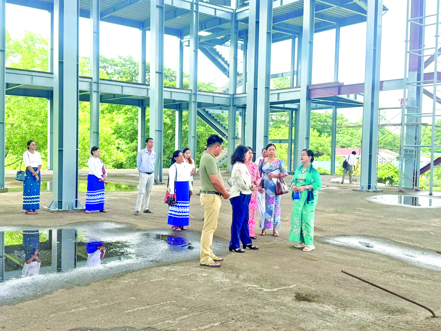 ထို့နောက် ဆောက်လုပ်ရေးလုပ်ငန်းခွင်အတွင်း ရေဂါလန် ၃၀၀၀၀ ဆံ့ Ground Tank နှစ်လုံး တည်ဆောက်ပြီးစီးမှု၊ ရှစ်လက်မ Tube Well တူးဖော်နေမှု၊ Steel Structure ဆီဆေးသုတ်ခြင်း လုပ်ငန်း၊ RC Wall နံရံများအချော ကိုင်ခြင်းလုပ်ငန်းနှင့် ရေလုံဆေးသုတ်ခြင်းလုပ်ငန်းများ ဆောင်ရွက်နေမှုကို ကြည့်ရှုစစ်ဆေးပြီး လိုက်နာဆောင်ရွက်ရန် လိုအပ်သည့် လုပ်ငန်းပိုင်းဆိုင်ရာများကို ဆွေးနွေးမှာကြားသည်။