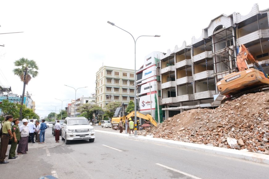 ဆက်လက်၍ ချမ်းမြသာစည်မြို့နယ်၊ ကျွန်းလုံးဥသျှောင်ရပ်ကွက်ရှိ မဟာမုနိဘုရားကြီး ဘဏ္ဍာတော်ပိုင် တိုက်တန်းနှင့် ချမ်းအေးသာစံမြို့နယ်၊ စိတ္တရမဟီရပ်ကွက်များသို့ရောက်ရှိပြီး ငလျင်ဒဏ်ကြောင့် ပြိုကျပျက်စီးခဲ့သည့် အန္တရာယ်ရှိအဆောက်အအုံများအား စက်ယန္တရားကြီးများအသုံးပြု၍ ဖယ်ရှားရှင်းလင်းဆောင်ရွက်နေမှုများအား ကြည့်ရှုစစ်ဆေးပြီး လုပ်ငန်းများအမြန်ဆုံးပြီးစီးအောင် ဆောင်ရွက်နိုင်ရေး၊ နေ့စဉ်အများပြည်သူအသုံးပြုမှုများသည့် လမ်းမကြီးများဖြစ်သည့်အတွက် လမ်းပိတ်ဆို့မှုမဖြစ်စေရေးနှင့် အန္တရာယ်ကင်းစွာသွားလာနိုင်ရေးတို့အား မှာကြားပြီး တာဝန်ရှိသူများ၏ တင်ပြချက်များအပေါ် လိုအပ်သည်များ ပေါင်းစပ်ညှိနှိုင်းဆောင်ရွက်ပေးခဲ့ကြောင်း သတင်းရရှိသည်။