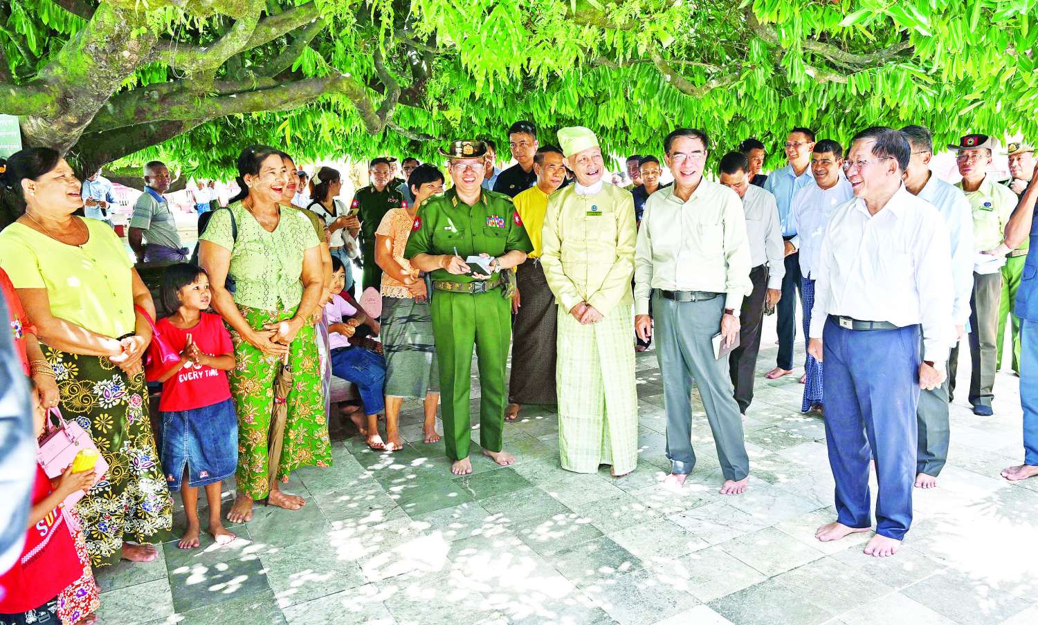 ထို့နောက် စေတီတော်မြတ်ကြီးအား လက်ယာရစ်လှည့်လည်ဖူးမြော်ကြည်ညိုကြပြီး တာဝန်ရှိသူများကို စေတီတော်မြတ်ကြီးနှင့် ပရိဝုဏ်တော်အတွင်းရှိ သာသနိကအဆောက်အအုံများ ရေရှည်တည်တံ့ခိုင်မြဲရေး၊ သန့်ရှင်းသပ်ရပ်ပြီး ကြည်ညိုသပ္ပာယ်ဖွယ်ဖြစ်စေရေး စဉ်ဆက်မပြတ် ထိန်းသိမ်းစောင့်ရှောက်သွားရန်လိုကြောင်း၊ ဘုရားဖူးလာ မိဘပြည်သူများ နေပူဒဏ်သက်သာစွာဖြင့် ဘုရားဖူးမြော်ကြည်ညိုနိုင်ရေးအတွက် တပ်မတော်(ကြည်း၊ ရေ၊ လေ)မိသားစုများက စေတီတော်ရင်ပြင်တော်အပြည့် စကျင်ကျောက်ပြားခင်းကျင်း ကပ်လှူလှူဒါန်းပေးသွားမည်ဖြစ်ကြောင်း၊ ထိုသို့ ဆောင်ရွက်ရာတွင်လည်း ရေဝင်ရေထွက်နေရာများ စနစ်တကျပါရှိစေရေး ဆောင်ရွက်သွားရန်လိုကြောင်းနှင့် လုပ်ငန်းဆောင်ရွက်မှုများအား အမြန်ဆုံးပြီးစီးအောင် ကြပ်မတ်ဆောင်ရွက်ပေးသွားရန်လိုကြောင်း မှာကြားခဲ့ပြီး ဘုရားဖူးလာ မိဘပြည်သူများအား ရင်းရင်းနှီးနှီး နှုတ်ဆက်ခဲ့သည်။