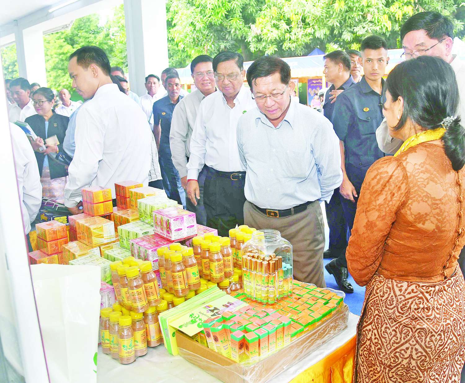 ထို့နောက် နိုင်ငံတော်လုံခြုံရေးနှင့် အေးချမ်းသာယာရေးကော်မရှင်ဥက္ကဋ္ဌသည် ခင်းကျင်းပြသထားသည့် အသေးစား၊ အငယ်စားနှင့် အလတ်စား စီးပွားရေး (MSME)လုပ်ငန်းများမှ ထွက်ရှိသည့် စိုက်ပျိုးမွေးမြူရေးထုတ်ကုန်ပြခန်းများ၌ ဒေသထွက်တိုင်းရင်းဆေးများ၊ အသုံးအဆောင်ပစ္စည်းများ၊ ချည်ထည်များနှင့် စားသောက်ကုန်ပစ္စည်းများ ပြသထားရှိမှုအား စိတ်ပါဝင်စားစွာဖြင့် လှည့်လည်ကြည့်ရှုပြီး တာဝန်ရှိသူများ၏ တင်ပြချက်များအပေါ် လိုအပ်သည်များလမ်းညွှန်မှာကြားခဲ့သည်။