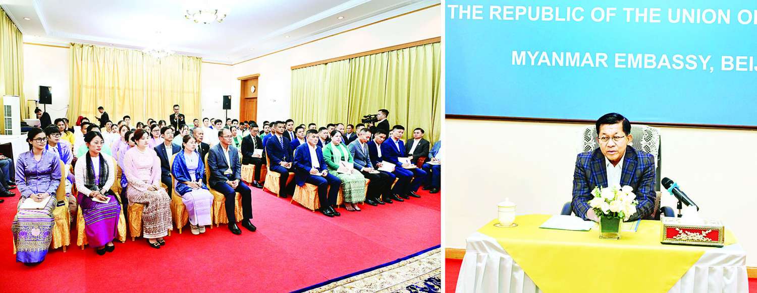 ပြည်ထောင်စုသမ္မတမြန်မာနိုင်ငံတော် ယာယီသမ္မတ နိုင်ငံတော်လုံခြုံရေးနှင့်အေးချမ်းသာယာရေးကော်မရှင်ဥက္ကဋ္ဌ ဗိုလ်ချုပ်မှူးကြီး မင်းအောင်လှိုင် တရုတ်ပြည်သူ့သမ္မတနိုင်ငံဆိုင်ရာ မြန်မာသံရုံးနှင့် စစ်သံရုံးမိသားစုများအား တွေ့ဆုံအမှာစကားပြောကြား
