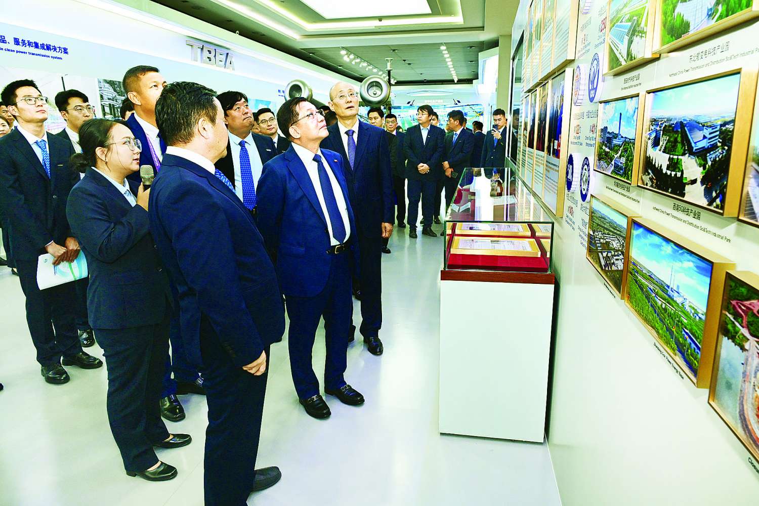 ဦးစွာ ပြည်ထောင်စုသမ္မတ မြန်မာနိုင်ငံတော်ယာယီသမ္မတ နိုင်ငံတော်လုံခြုံရေးနှင့် အေးချမ်းသာယာရေးကော်မရှင်ဥက္ကဋ္ဌနှင့် အဖွဲ့ဝင်များသည် Tebian Electric Apparatus (TBEA) ကုမ္ပဏီသို့ ရောက်ရှိကြရာ ကုမ္ပဏီဥက္ကဋ္ဌနှင့် ကုမ္ပဏီဝန်ထမ်းများက ရင်းနှီးနွေးထွေးစွာ ကြိုဆိုနှုတ်ဆက်ကြသည်။