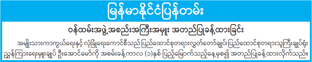 ဝန်ကြီးဌာန ကြေညာချက်များ