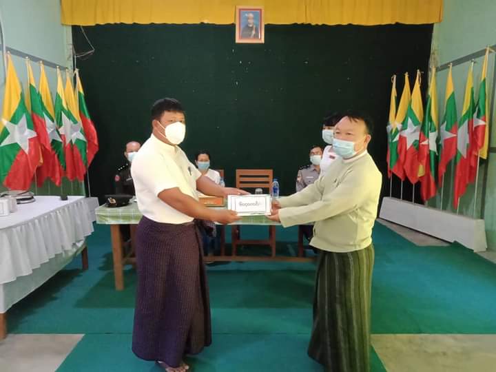 ဆက်လက်ပြီး မြို့နယ်အုပ်ချုပ်ရေးမှူး ၊ မြို့မရဲစခန်းမှူး၊ မြို့နယ်လူဝင်မှုကြီးကြပ်ရေးနှင့် ပြည်သူ့အင်အား ဦးစီးဌာနမှူးနှင့် လူမှုဝန်ထမ်းရုံးမှ တာဝန်ရှိသူများက သက်ဆိုင်ရာ ရပ်ကွက်ကျေးရွာ အုပ်စု(၈)အုပ်စု၏ အုပ်ချုပ်ရေးမှူးများထံ  အိမ်ထောင်စုပေါင်း (၅၇၀)စုအတွက် တစ်ရာတစ်ဆယ့် လေးသိန်းကို ပေးအပ်ခဲ့ကြောင်း သိရှိရသည်။