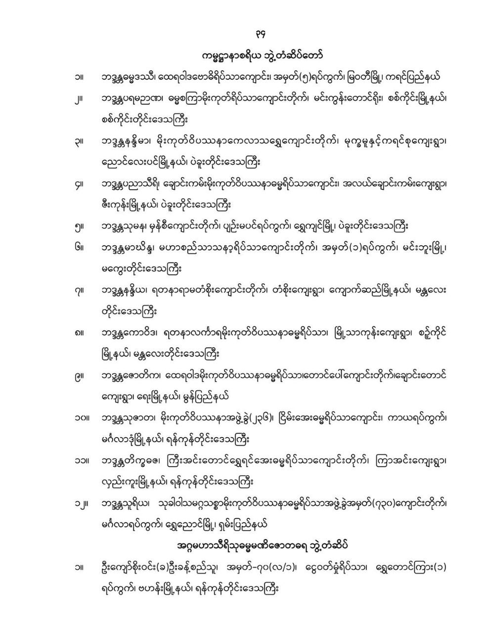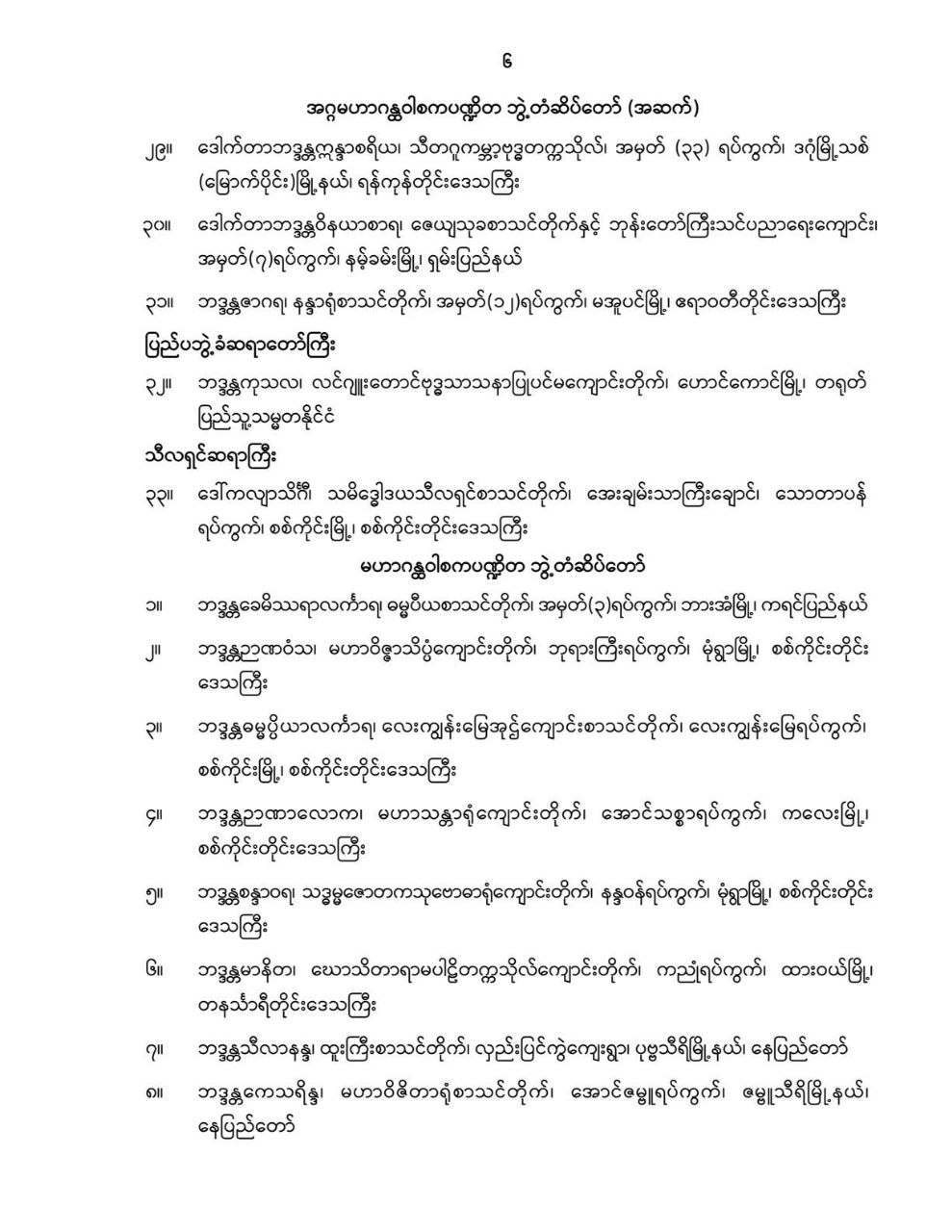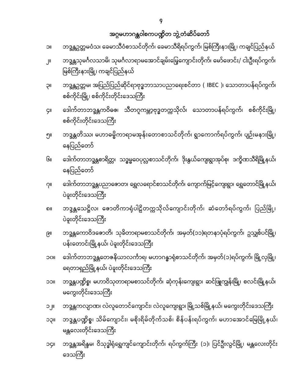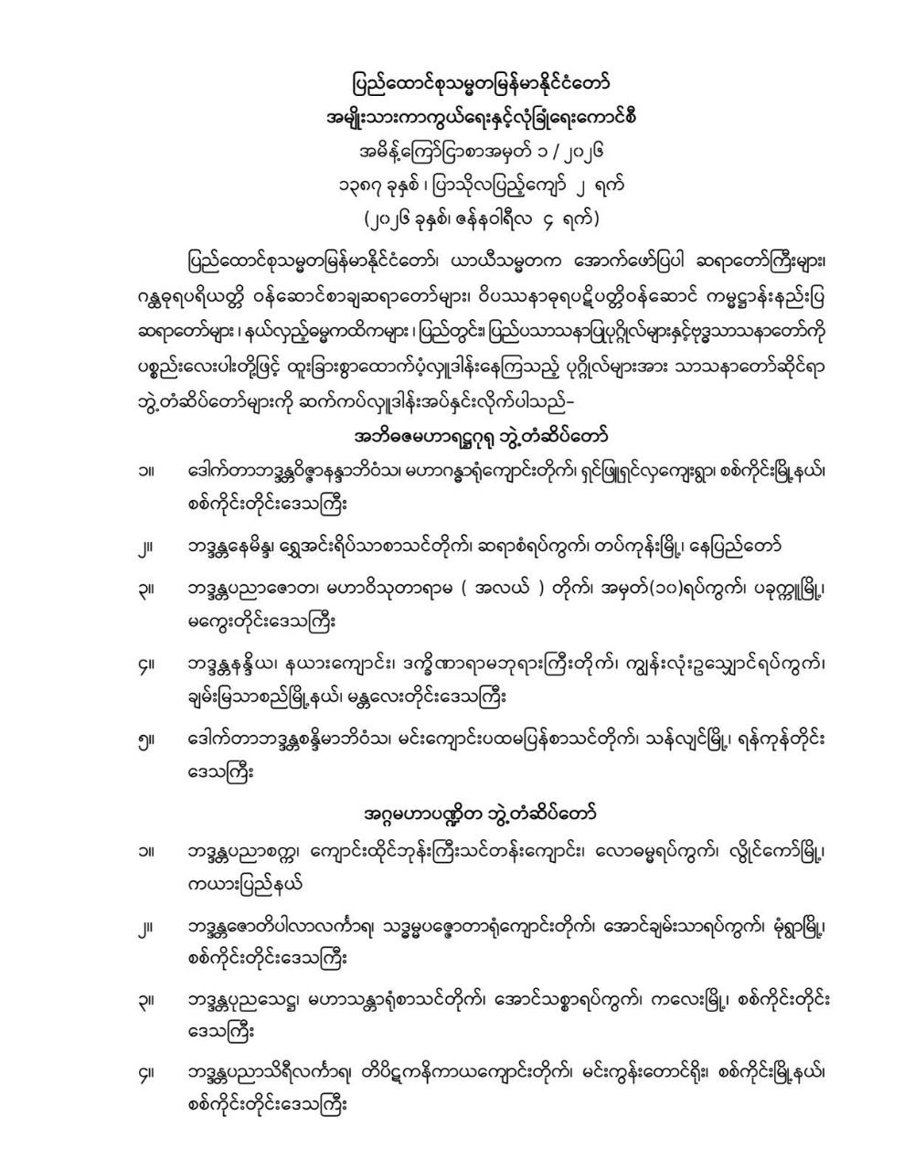 ဝန်ကြီးဌာန ကြေညာချက်များ