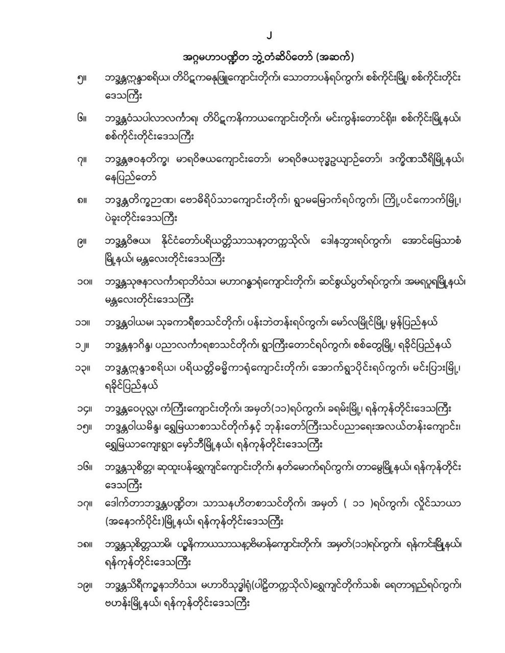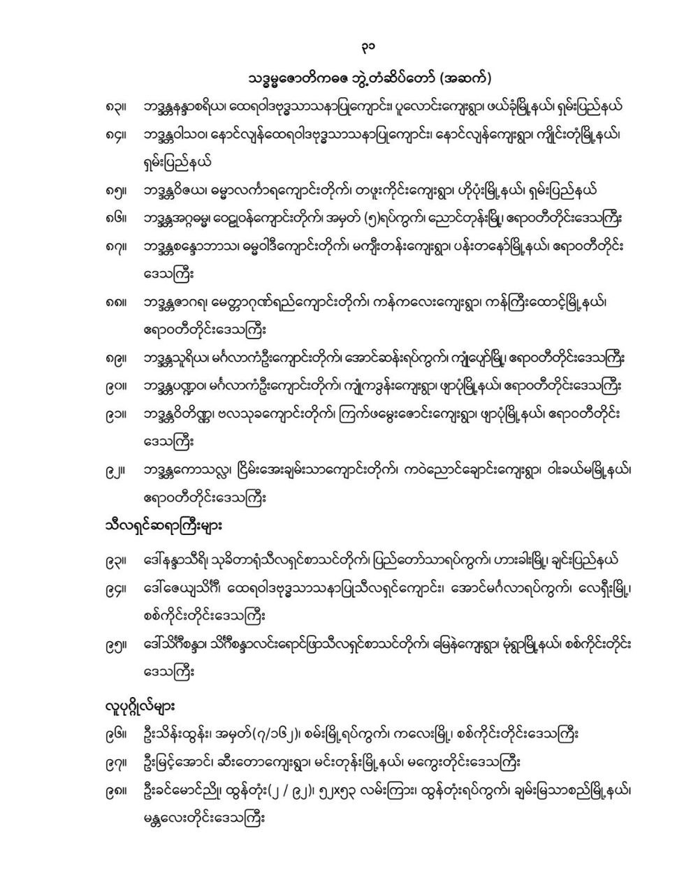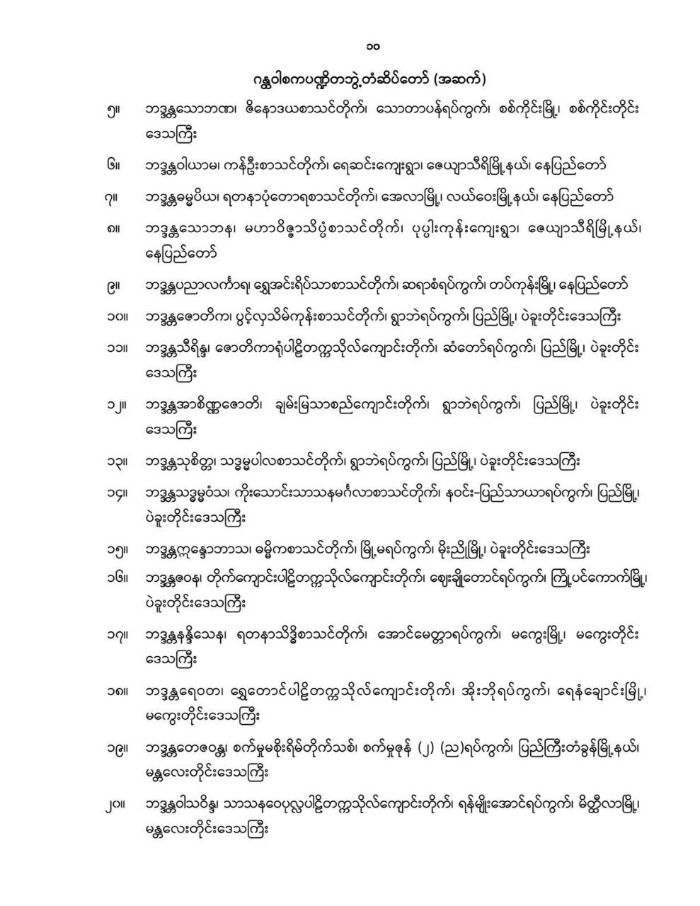 ဝန်ကြီးဌာန ကြေညာချက်များ