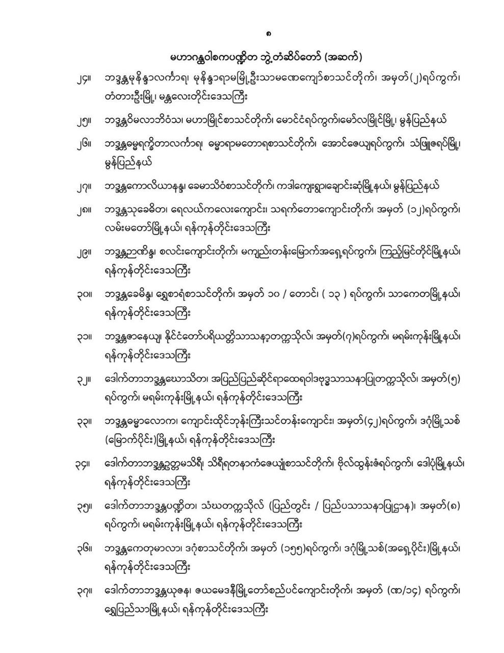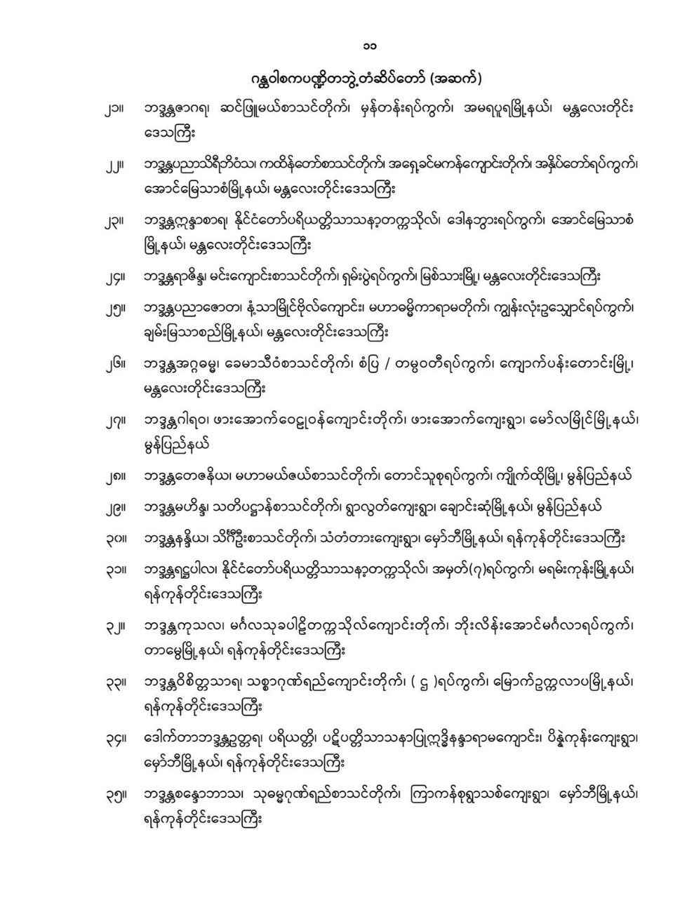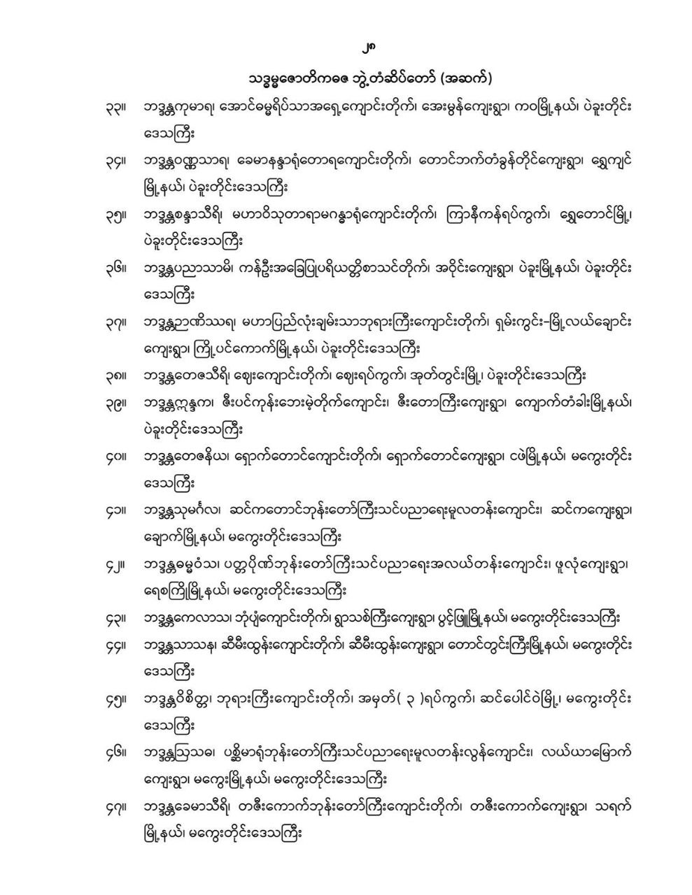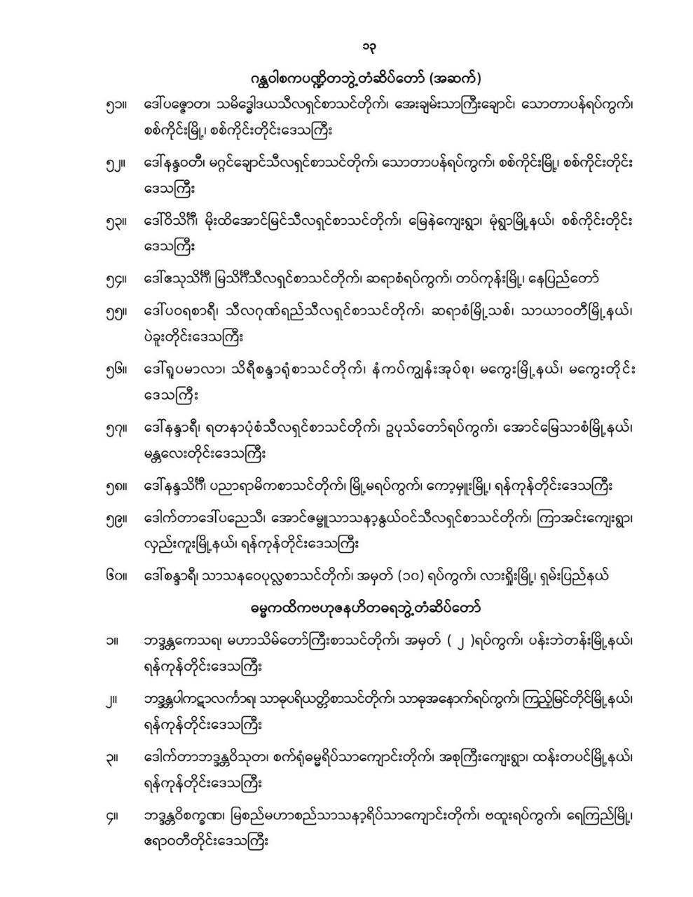 ဝန်ကြီးဌာန ကြေညာချက်များ