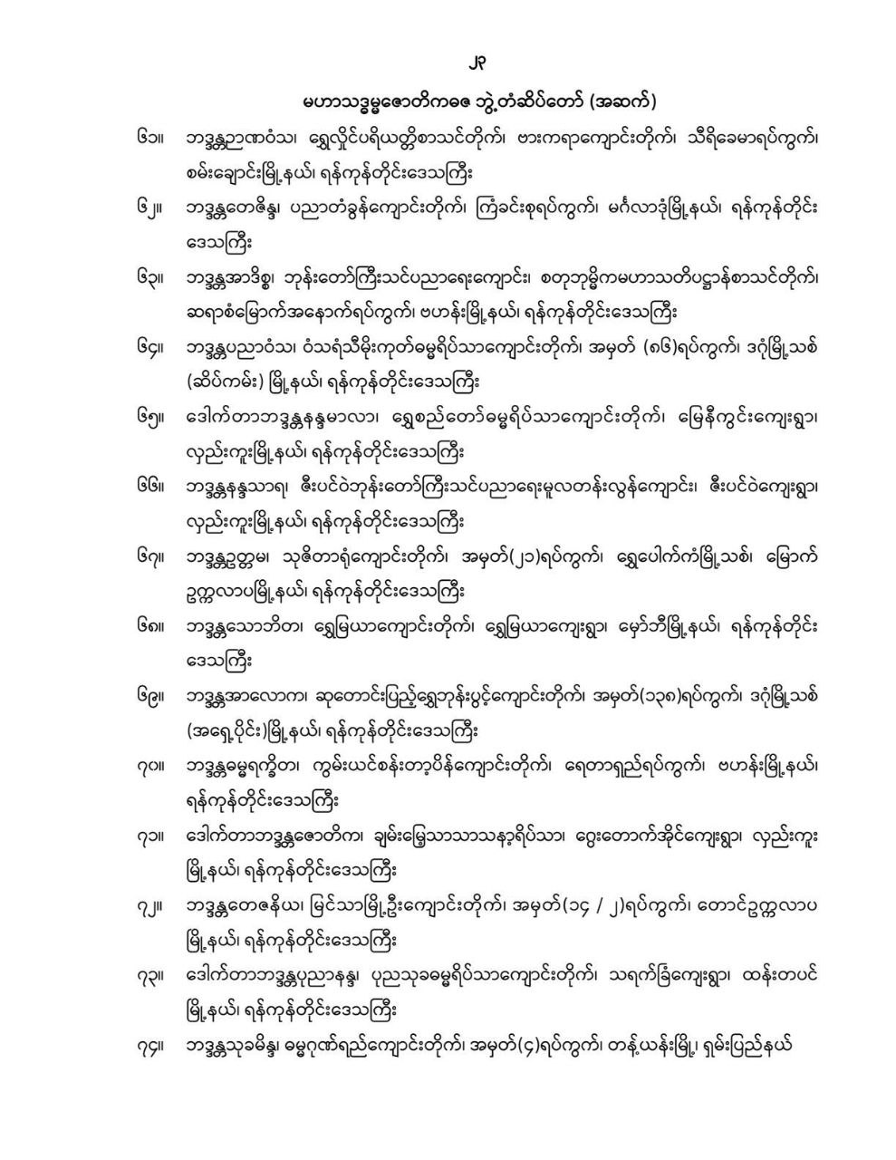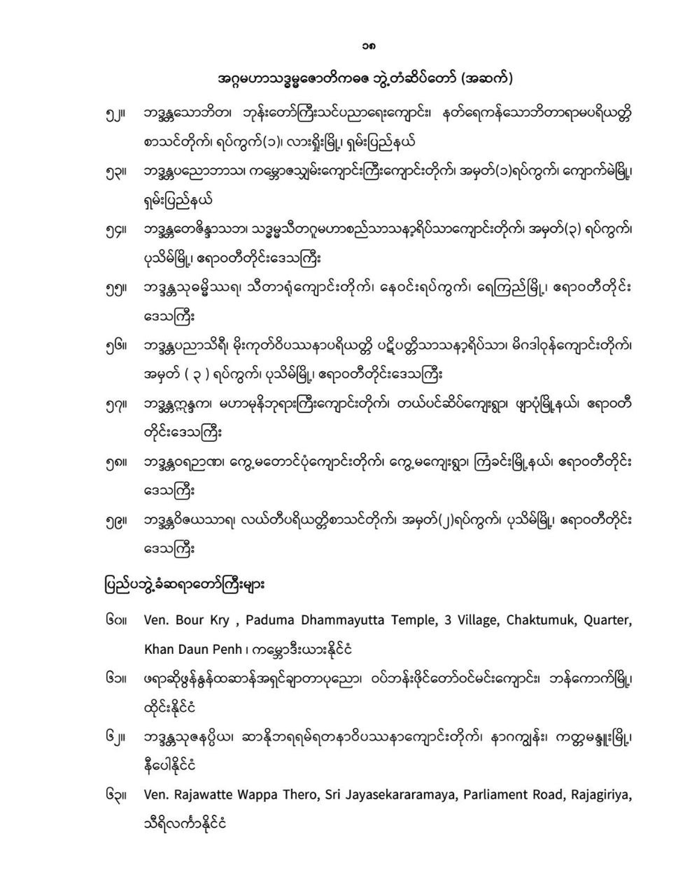 သာသနာတော်ဆိုင်ရာ ဘွဲ့တံဆိပ်တော်များ ဆက်ကပ်လှူဒါန်း