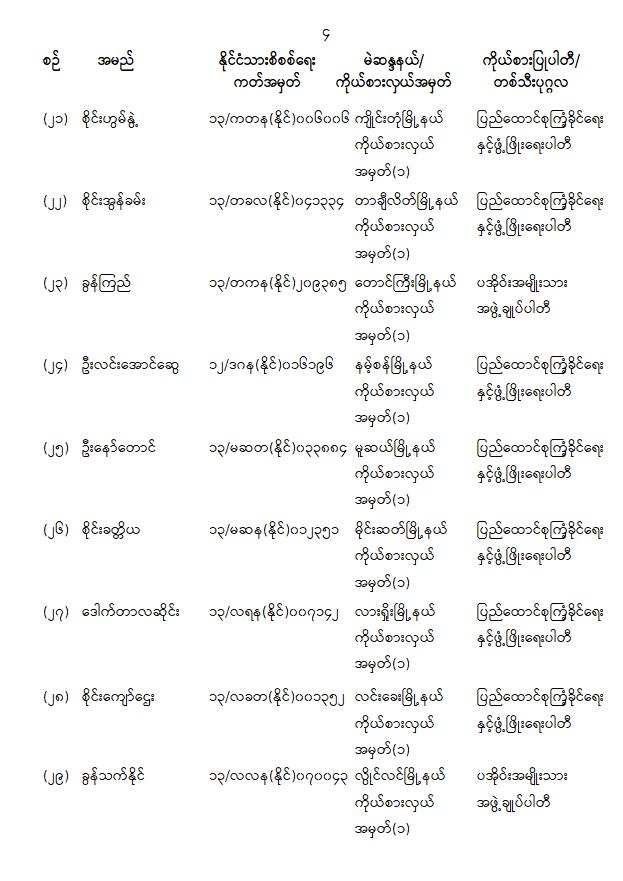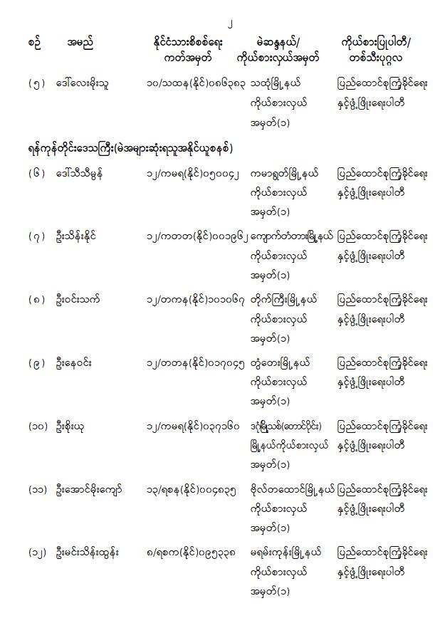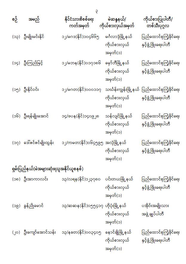 တိုင်းဒေသကြီးလွှတ်တော် သို့မဟုတ် ပြည်နယ်လွှတ်တော်ကိုယ်စားလှယ်အဖြစ် ရွေးကောက်တင်မြှောက်ခံရသူများအမည်စာရင်း ကြေညာခြင်း 01/08/2026