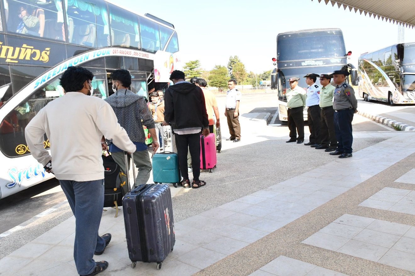 ထိုင်းနိုင်ငံအပါအဝင် အိမ်နီးချင်းနိုင်ငံအချို့ကို တစ်ဆင့်ခံဖြတ်သန်း၍ မြန်မာနိုင်ငံအတွင်းသို့ နယ်စပ်လမ်းကြောင်းများမှ တရားမဝင် ဝင်ရောက်လာပြီး ကရင်ပြည်နယ်၊ မြဝတီ-ရွှေကုက္ကိုလ်နယ်မြေတွင် တရားမဝင်အွန်လိုင်းလောင်းကစားမှုများ၊ အွန်လိုင်းလိမ်လည်မှုများ၊ ဒုစရိုက်မှုများ ကျူးလွန်ခဲ့ကြသည့် အိန္ဒိယနိုင်ငံ သား ၂၁၂ ဦးနှင့် ပါကစ္စတန်နိုင်ငံသား ၁၅ ဦး၊ စုစုပေါင်း ပြည်ပနိုင်ငံသား ၂၂၇ ဦးတို့ကို ယနေ့နံနက်ပိုင်းတွင် မြန်မာ - ထိုင်း အမှတ်(၂) ချစ်ကြည်ရေးတံတားမှတစ်ဆင့် သက်ဆိုင်ရာနိုင်ငံများသို့ လူသားချင်းစာနာထောက်ထားမှုနှင့် နိုင်ငံအချင်းချင်း ချစ်ကြည်ရင်းနှီးမှုတို့ကိုရှေးရှု၍ ဥပဒေလုပ်ထုံးလုပ်နည်းများနှင့်အညီ ထပ်မံလွှဲပြောင်းပေးသည်။