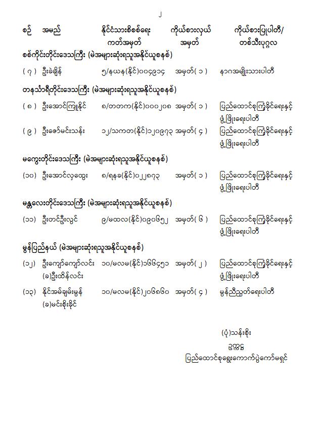 အမျိုးသားလွှတ်တော်ကိုယ်စားလှယ်အဖြစ် ရွေးကောက်တင်မြှောက်ခံရသူများ အမည်စာရင်းကြေညာခြင်း
