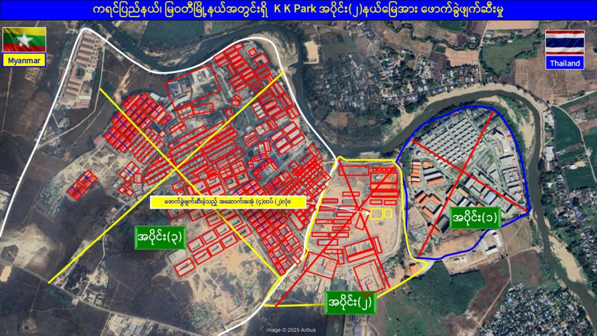မြန်မာနိုင်ငံအစိုးရအနေဖြင့် အွန်လိုင်းလိမ်လည်လောင်းကစားမှုများ အများဆုံး အခြေချလုပ်ကိုင်လျက်ရှိကြသည့် ရွှေကုက္ကိုလ်နယ်မြေနှင့် KK Park နယ်မြေများရှိတရားမဝင် အဆောက်အအုံများအတွင်း ဝင်ရောက်ရှင်းလင်း၍ အွန်လိုင်းလိမ်လည် လောင်းကစားမှုလုပ်ငန်းစဉ်များတွင် အသုံးပြုခဲ့သည့် သိမ်းဆည်းရမိပစ္စည်းများအား စနစ်တကျဖျက်ဆီးခြင်းနှင့် တရားမဝင်အဆောက်အအုံများအား စနစ်တကျဖြိုချဖျက်ဆီးခြင်းများကို အဖွဲ့စုံပါဝင်သည့် ပူးပေါင်းအဖွဲ့ဖြင့် ဆောင်ရွက်လျက်ရှိရာ ယနေ့တွင်လည်း KK အဖွဲ့စုံပါဝင်သည့် Park နယ်မြေအတွင်းရှိ တရားမဝင်အဆောက်အအုံ ၂ လုံးကို ထပ်မံဖြိုချဖျက်ဆီးခဲ့ကြောင်း သိရှိရသည်။