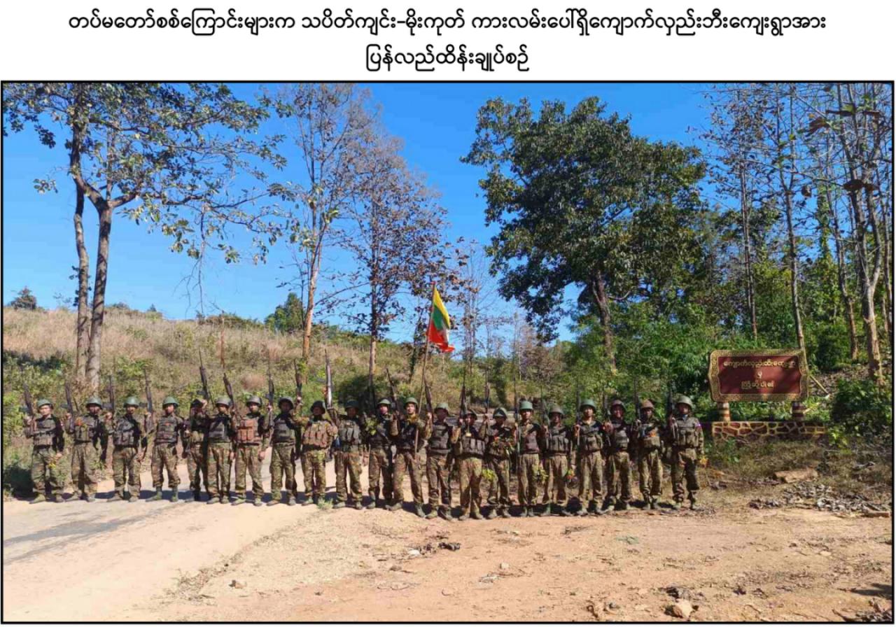 တပ်မတော်စစ်ကြောင်းများအနေဖြင့် သပိတ်ကျင်း-မိုးကုတ် ဒေသအနီးဝန်းကျင်ရှိ ဒေသခံပြည်သူများ၏ လူမှုစီးပွားဘဝများ လုံခြုံမှုရှိစေရေး၊ ကုန်စည်ကူးသန်းရောင်းဝယ်မှု လွယ်ကူလျင်မြန်စွာချောမွေ့စေရေးနှင့် နိုင်ငံ့စီးပွားတိုးတက်ရေးတို့အတွက် အထောက်အကူပြုသည့် မြေပေါ်/မြေအောက် သယံဇာတများ စနစ်တကျ စီမံဆောင်ရွက်နိုင်ရေးတို့အတွက် သပိတ်ကျင်း-မိုးကုတ် ဆက်သွယ်ရေးလမ်းကြောင်းအား အမြန်ဆုံး ပြန်လည်ဖွင့်လှစ်နိုင်ရေး အကြမ်းဖက်သောင်းကျန်းသူများ ယာယီစိုးမိုးထားသည့် နယ်မြေခံတပ်ရင်းဌာနချုပ်နှင့် ၎င်းဒေသတစ်ဝိုက်အား ပြန်လည်သိမ်းပိုက်ရရှိရေးအတွက် ဒေသခံပြည်သူများနှင့် အလင်းဝင်ရောက်လာသည့် PDF အဖွဲ့ဝင်များ၏ သတင်းပေးပို့မှုများကို စနစ်တကျပေါင်းစပ်သုံးသပ်ပြီး နယ်မြေလုံခြုံရေးလုပ်ငန်းများကို စစ်ကြောင်းများခွဲ၍ ဟန်ချက်ညီစွာ အရှိန်အဟန်ဖြင့် ဆက်လက်ချီတက်ခဲ့ရာ ၂၀၂၆ ခုနှစ်၊ ဇန်နဝါရီ ၁၁ ရက်နေ့တွင် ညောင်ပင်သာကျေးရွာအားလည်းကောင်း၊ ဇန်နဝါရီ ၁၂ ရက်နေ့တွင် ပိုးဇာနွယ်ကျေးရွာ အားလည်းကောင်း၊ ဇန်နဝါရီ ၁၃ ရက်နေ့တွင် ကျောက်လှည်းဘီးကျေးရွာအား လည်းကောင်း၊ ဇန်နဝါရီ ၁၄ ရက် ယနေ့တွင် အဆိုပါလမ်းကြောင်းပေါ်ရှိ နယ်မြေခံတပ်ရင်းဌာနချုပ်နှင့် စိန်ကုန်းကျေးရွာတစ်ဝိုက်တို့အားလည်းကောင်း တပ်မတော်စစ်ကြောင်းများက အပြည့်အဝ ပြန်လည်သိမ်းပိုက်ထိန်းချုပ်နိုင်ခဲ့သည်။