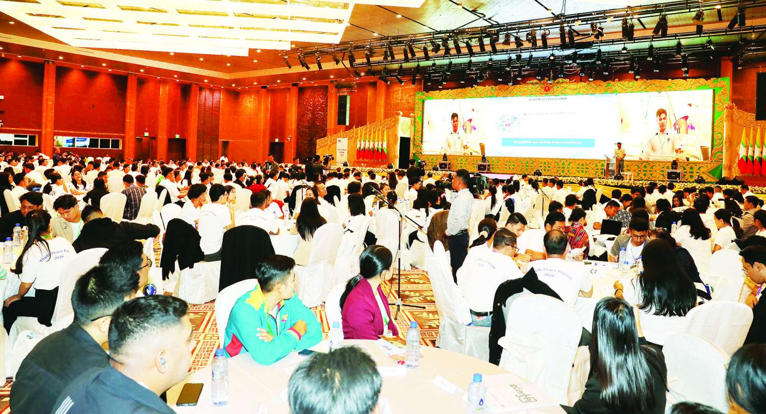လူငယ်ငြိမ်းချမ်းရေးဖိုရမ် ၂၀၂၆ ဒုတိယနေ့ကို နေပြည်တော်ရှိ မြန်မာအပြည်ပြည်ဆိုင်ရာကွန်ဗင်းရှင်း ဗဟိုဌာန (၁) ကျောက်စိမ်းခန်းမ၌ ယနေ့ဆက်လက်ကျင်းပသည်။