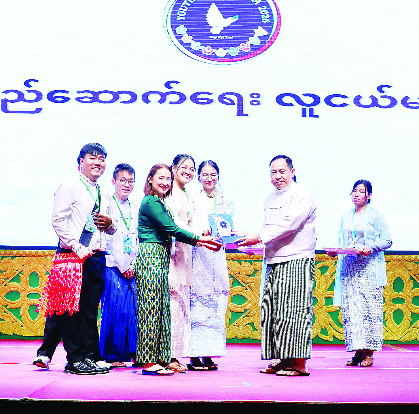 ဆက်လက်၍ အနာဂတ်နိုင်ငံ တည်ဆောက်ရေးအတွက် လူငယ်ငြိမ်းချမ်းရေးဖိုရမ် ၂၀၂၆ က ထုတ်ပြန်ကြေညာသည့် လူငယ်ကြေညာစာတမ်းကို လူငယ် (၄) ဦးက ဖိုရမ်သို့ ဖတ်ကြားတင်ပြသည်။